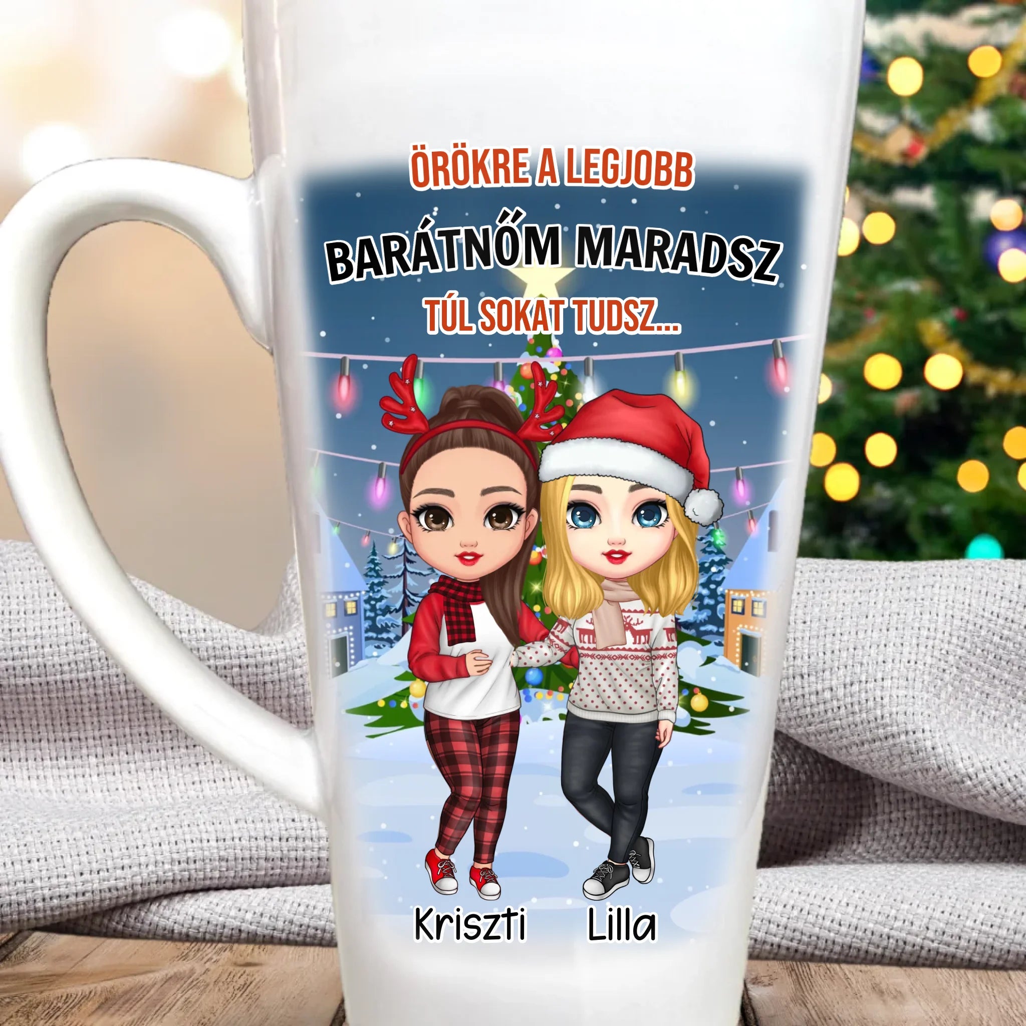 A barátnőknek szóló karácsonyi latte bögre leírása: