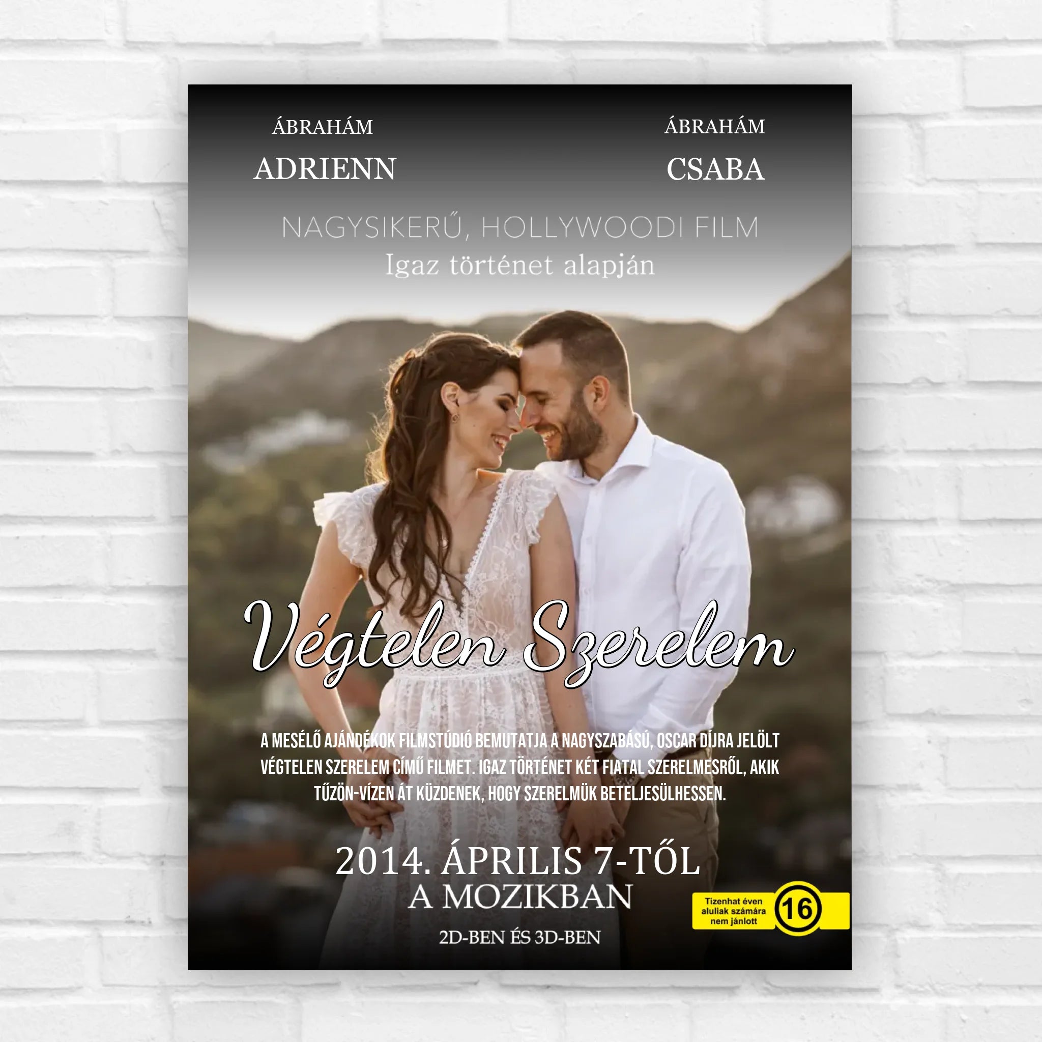 Különleges Valentin napi, vagy évfordulós ajándék pároknak. A filmes ajándék képen a ti fotótok, neveitek és a történetetek szerepel. Szuper, mozis poszter.