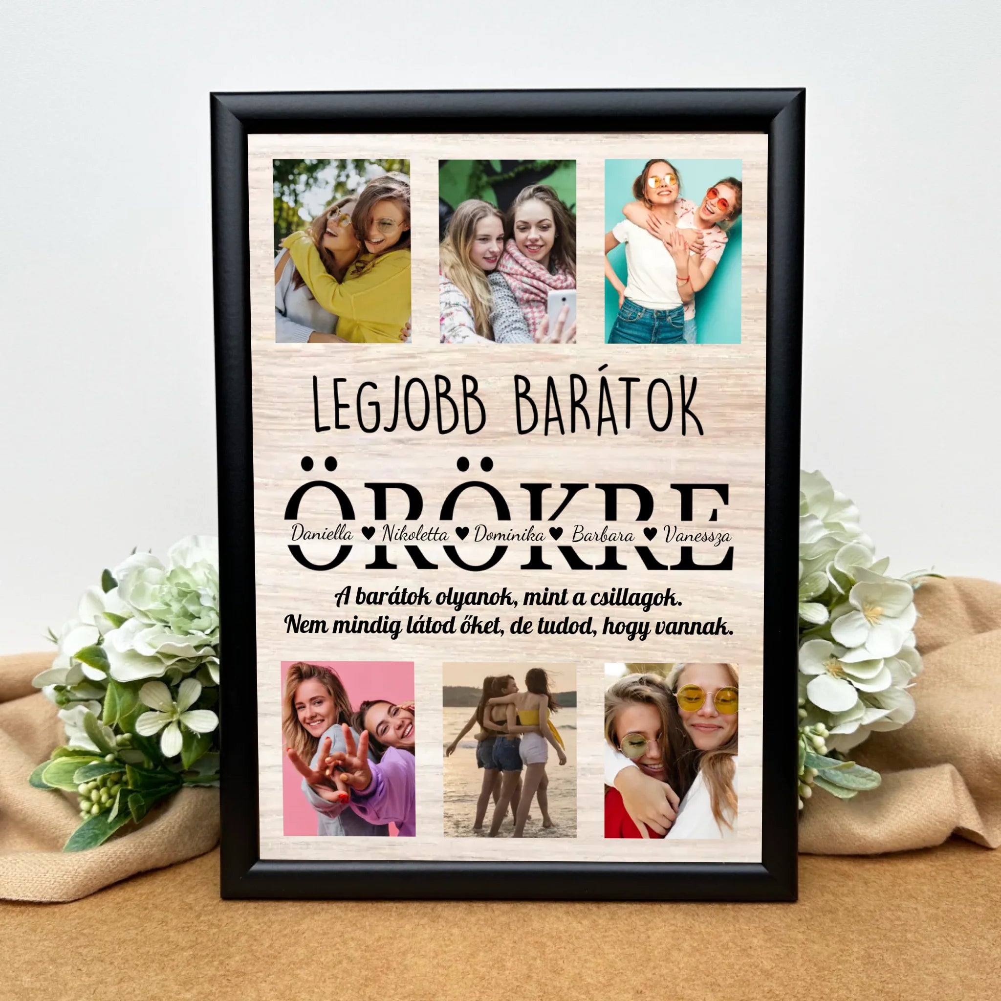 Teljesen személyre szabható ajándék. A képre az általad megadott fényképek és nevek kerülnek. Maximum 5 személy nevét tudod megadni a képre. Akár egy teljesen egyedi szöveget is megtudsz adni az aljába. Nem csak egy szuper, egyedi ajándék, de még meseszép dekorációs elem is.