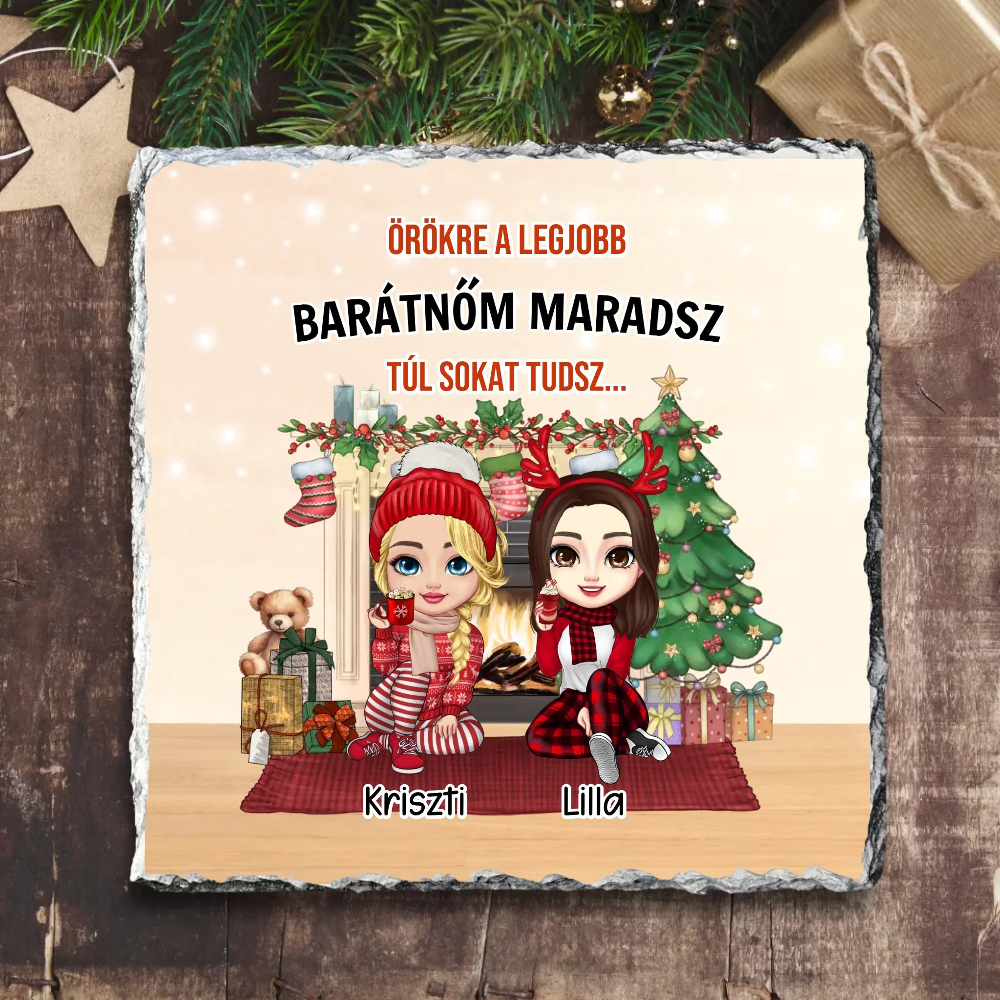 Szeretnéd meglepni a barátnődet? Mit szólnál egy ilyen karácsonyi hangulatú, szép dekor kőtáblához? A szövege vicces, a külseje bájos és szuper dekorációs elem is. Szerintem biztosan tetszene neki. Kiteheti a polcra, a dolgozó asztalára, vagy ahova csak szeretné.