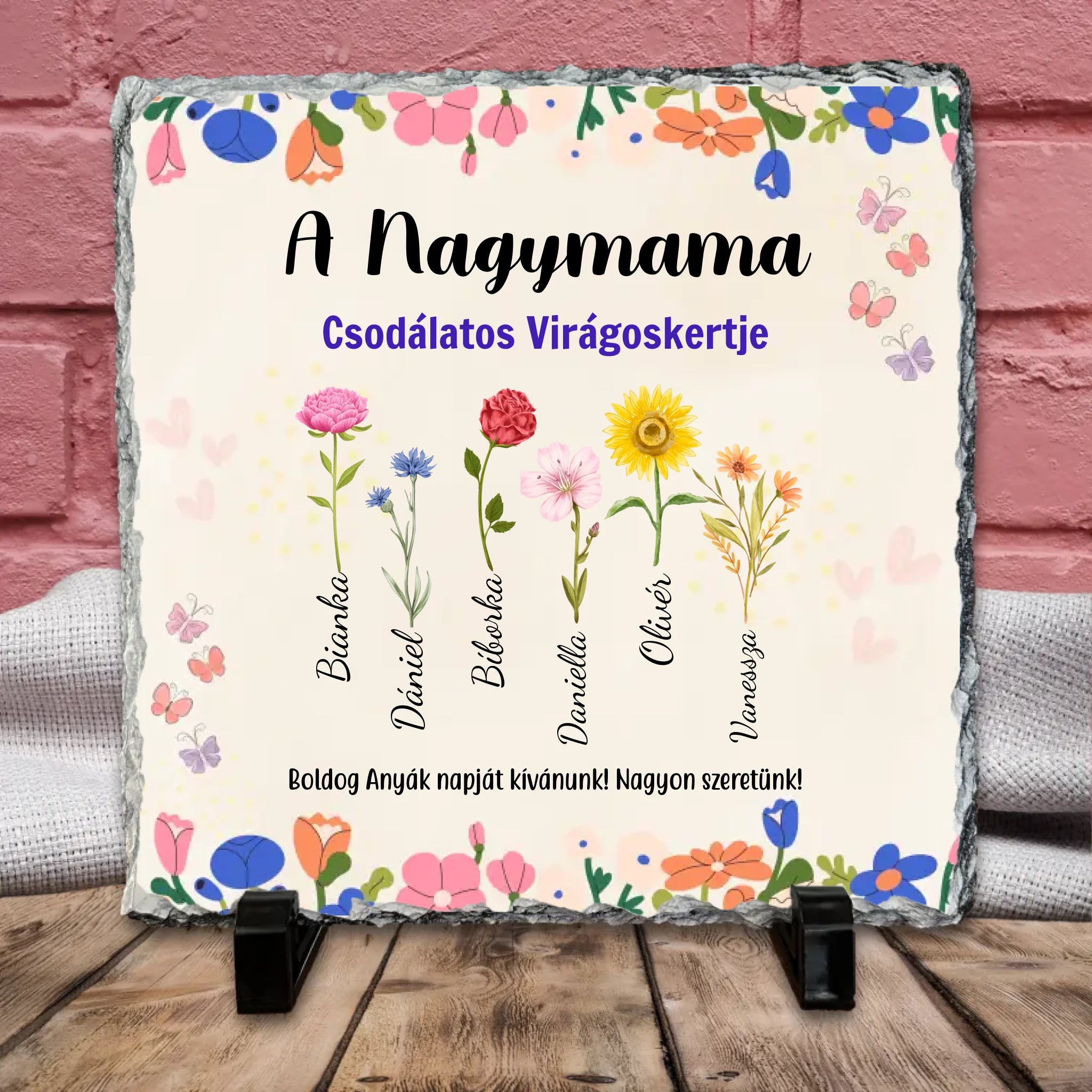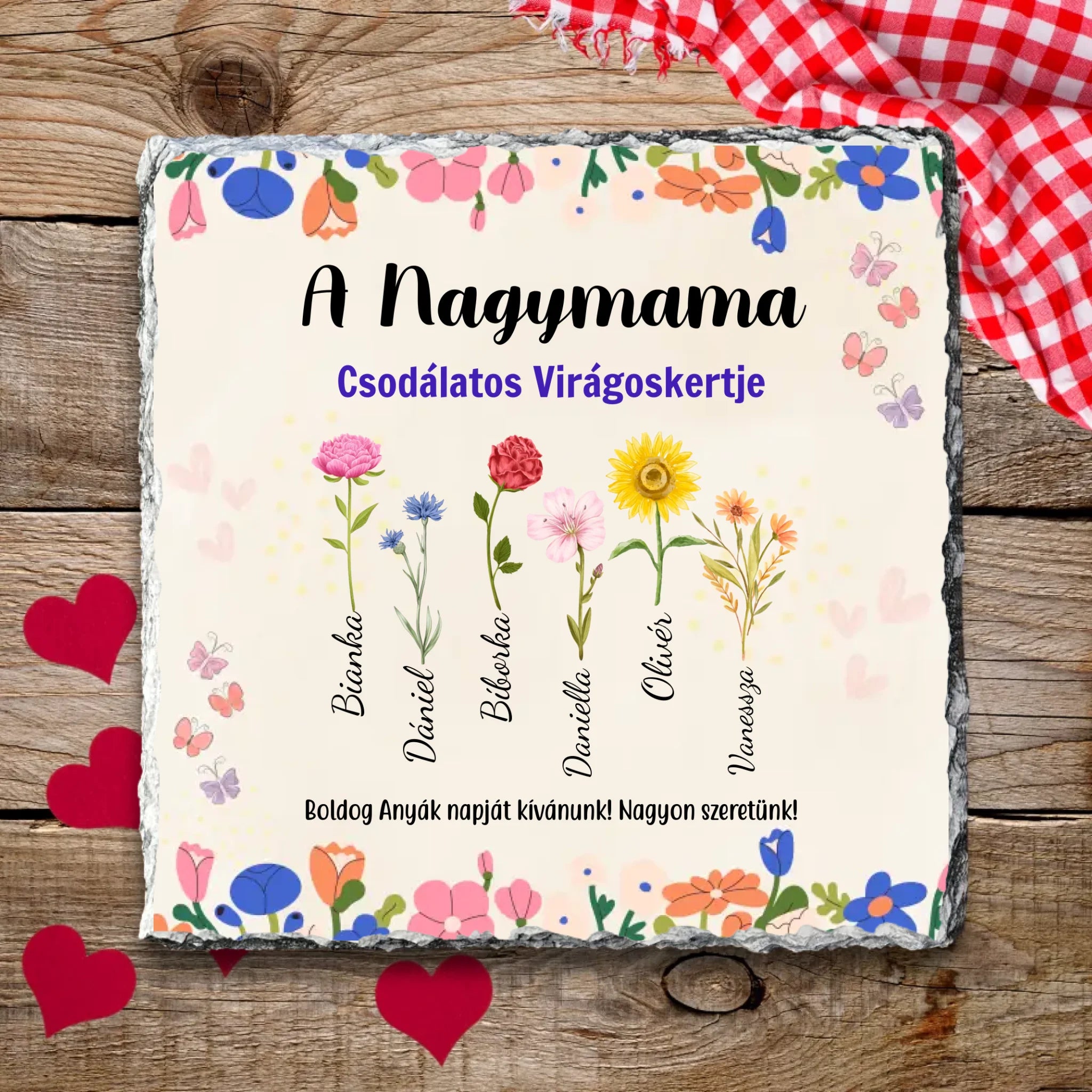 Ha egy igazán szívhez szóló ajándékot keresel Anyák napjára, akkor ez a virágos kőtábla tökéletes meglepetés lehet nagymamák számára. Hiszen minden nagymama az unokáira a legbüszkébb és akárhányszor csak ránéz majd, melegség fogja elönteni a szívét, mert tudja, hogy Ti mindig ott lesztek neki.