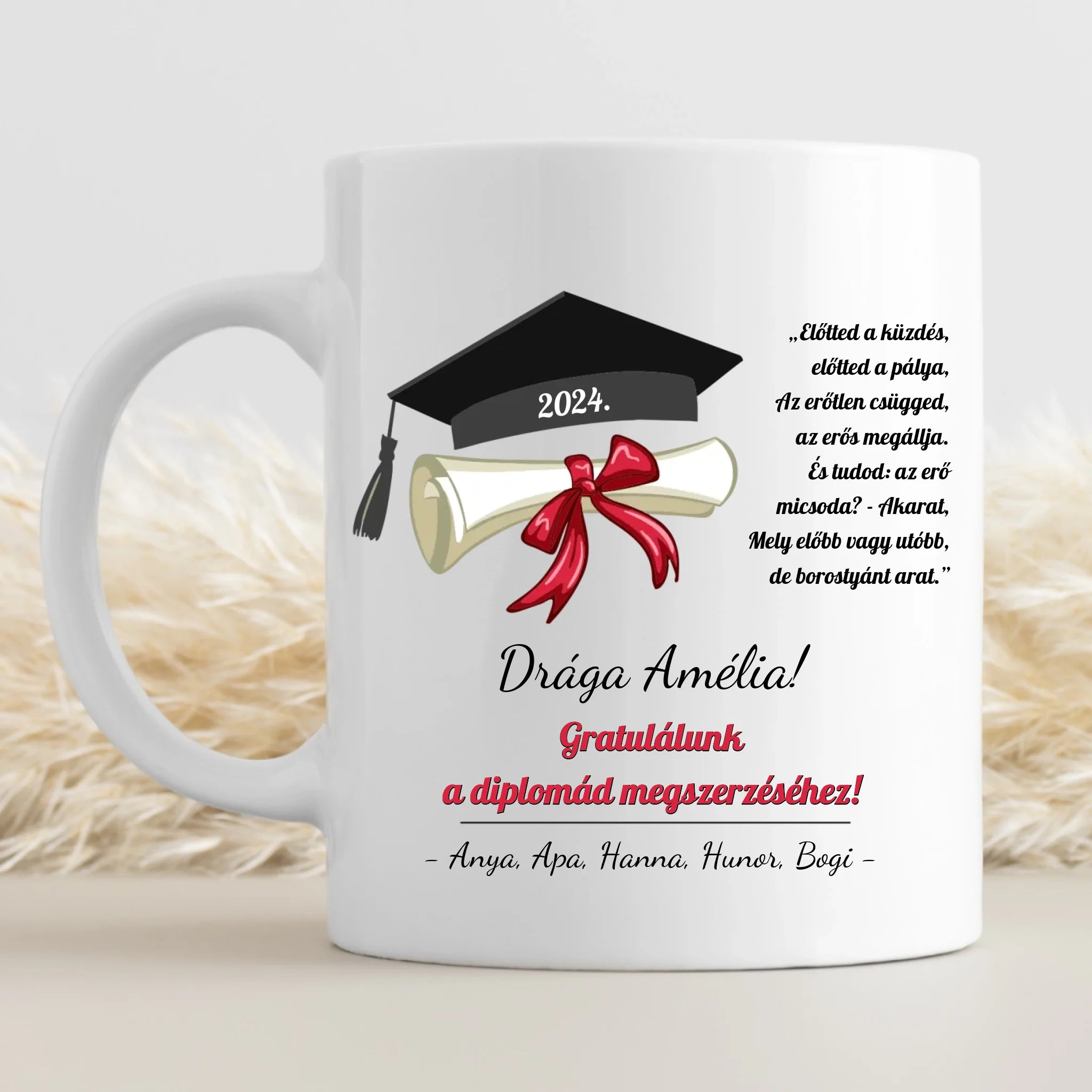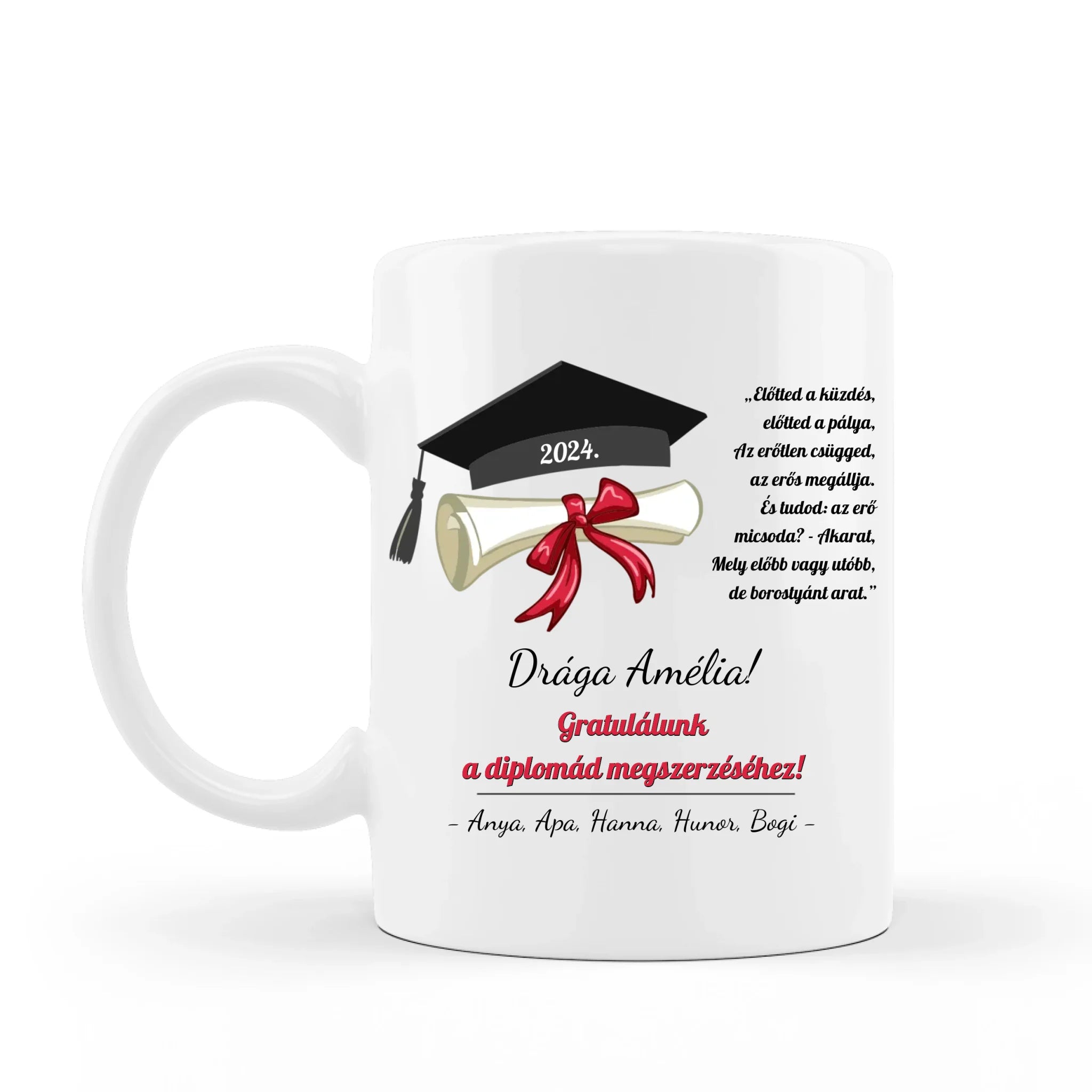 Van a családodban egy olyan személy, akinek közeleg a diplomaosztója és szeretnéd egy személyre szóló ajándékkal meglepni? Akkor ne keresgélj tovább, mert megtaláltad! Ez a diplomaosztóra szánt ajándék emlékezetes meglepetés lehet egy olyan lány szerettednek, aki most fogja megszerezni a diplomáját.Ezzel az egyedi bögrével biztosan mosolyt fogsz csalni az arcára. Lepd meg vele szerettedet a diplomája megszerzése napján.