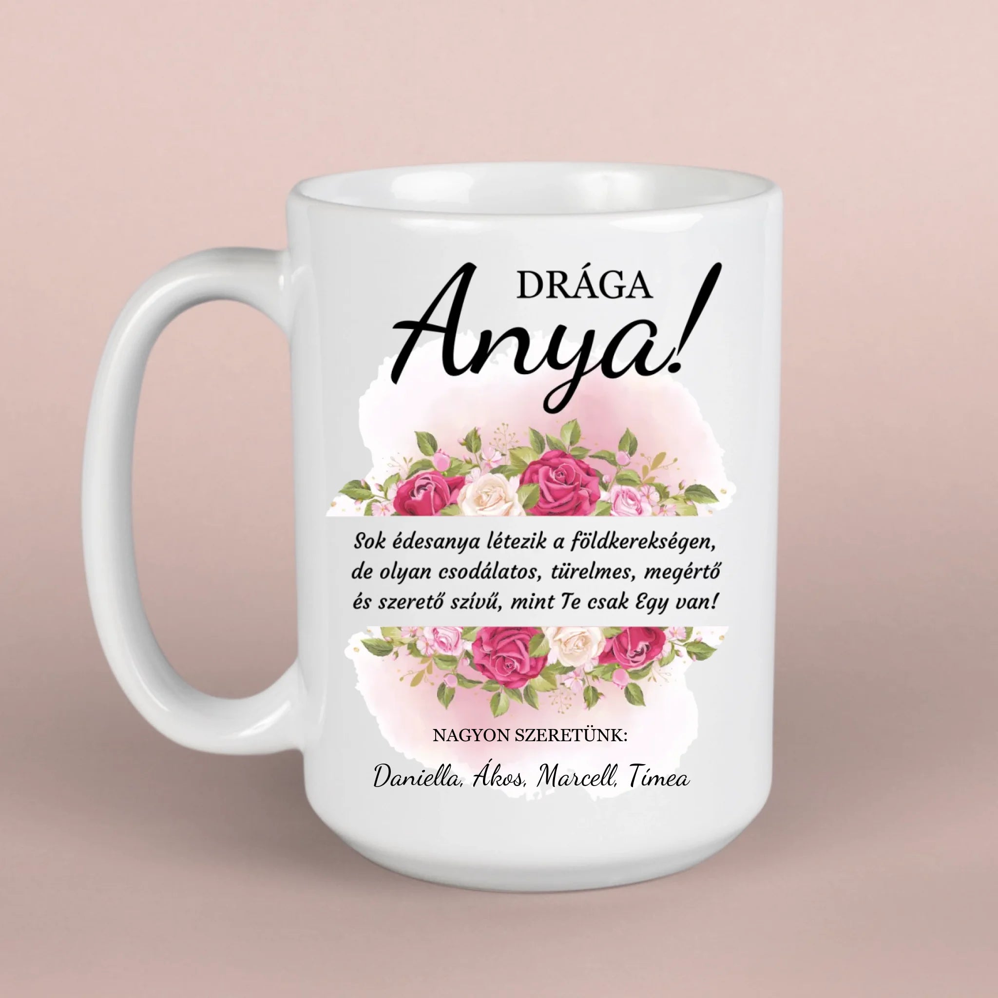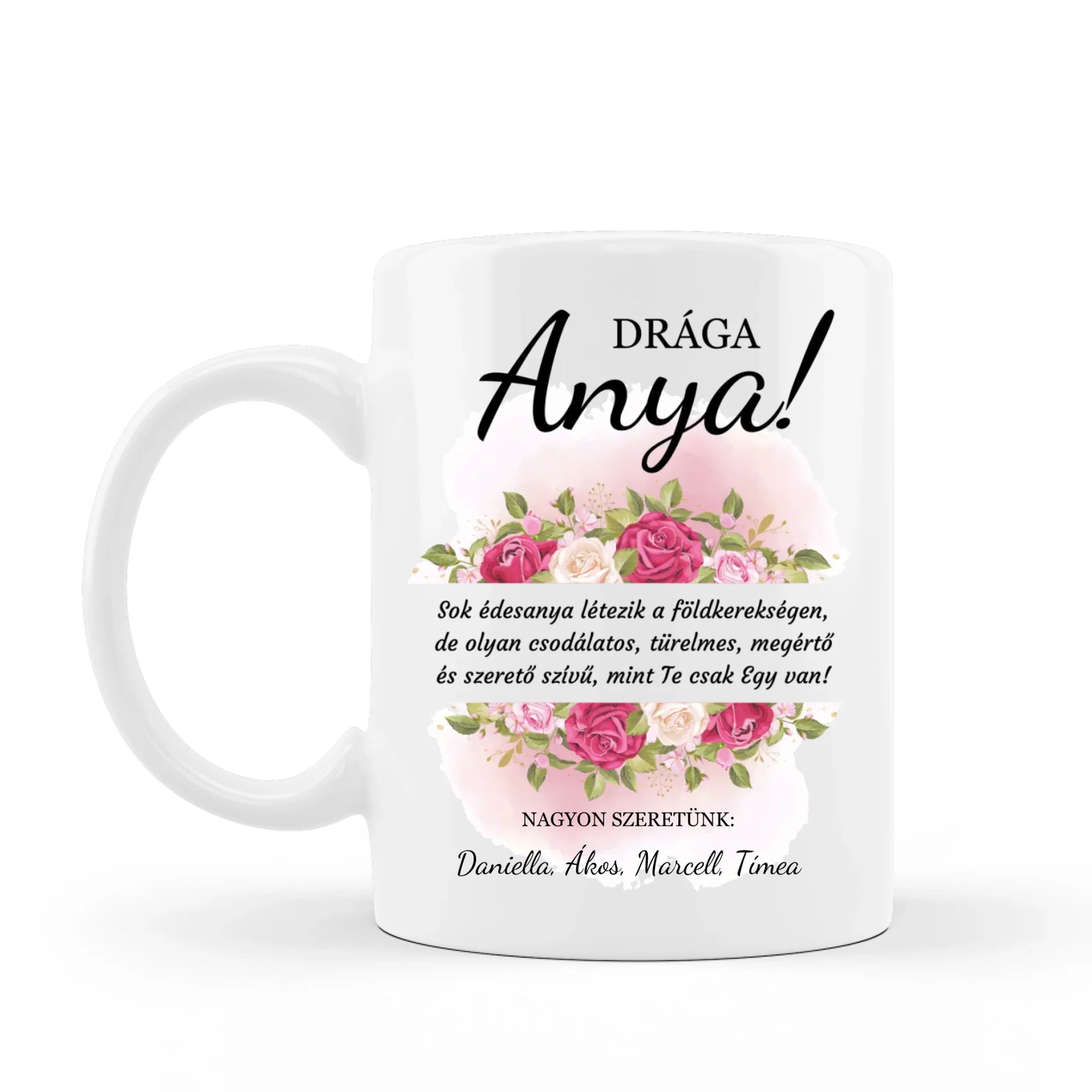 Anyák napi szívet melengető virágos mintázatú bögre. Lepd meg ezzel a kedves ajándékkal az édesanyádat, a keresztanyukádat, vagy a nagymamádat. Biztos vagyok benne, hogy ez lesz a kedvenc bögréjük és szívesen kortyolgatják majd ebből a reggeli kávéjukat.