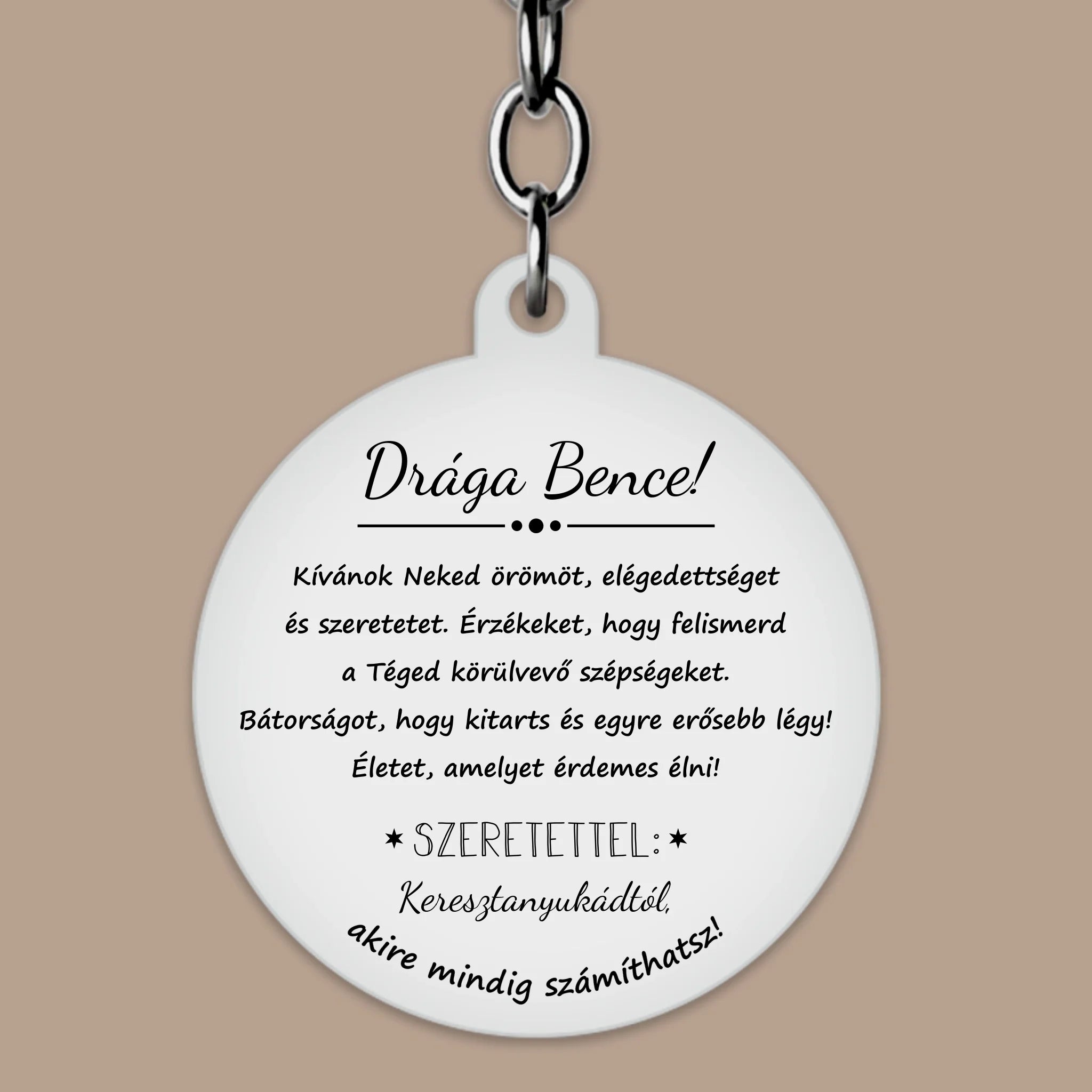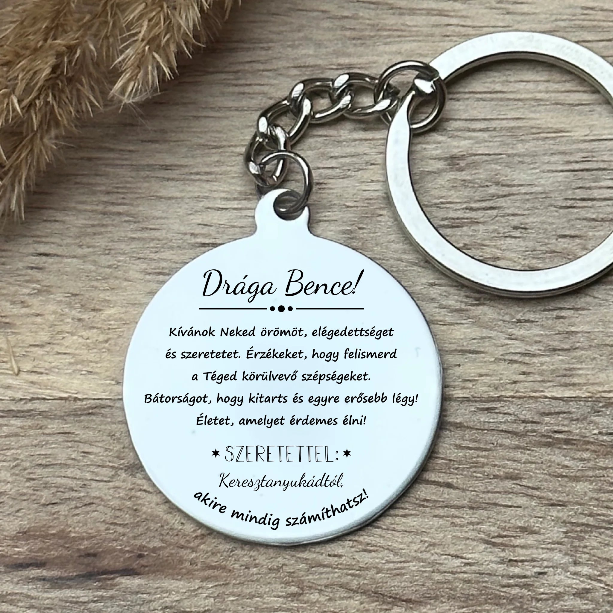 Maradandó ajándék keresztelőre fiúnak – gravírozott kulcstartó