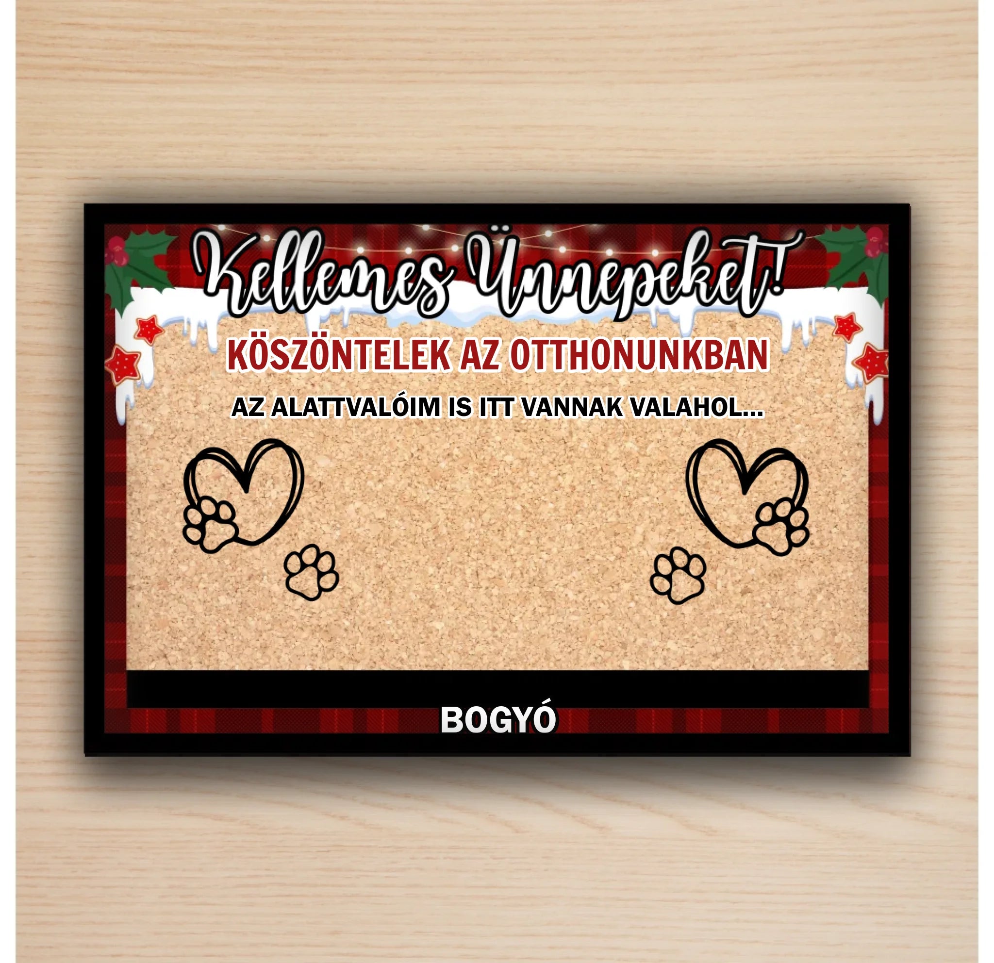 Jópofa, vicces szövegű kiskedvences lábtörlő karácsonyi verzióban. Lepd meg vele egy állatimádó szerettedet, vagy dobd fel vele a saját otthonodat. A lábtörlőn szereplő szövegeket Te adhatod meg. Kiválaszthatod a figurákat és a megadhatod a kiskedvencek neveit is. Sok-sok kutya és cica típusból tudsz válogatni. Teljésen személyre tudod szabni a lábtörlődet.