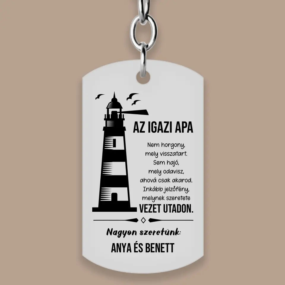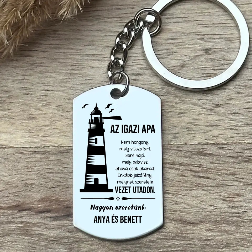Remek karácsoyi ajándék apának. Szívet melengető felirattal és az általad kért nevekkel. Egy szeretettel teli ajándék a párodnak, vagy a szülődnek, ami mindig vigyáz rá és amikor ránéz örömmel telik meg a szíve, mert tudja, hogy a családja hazavárja. Ez a mesélő kulcstartó mindenki szívét megmelengeti és ezen kívül tökéletes dísze a kocsikulcsának, vagy a lakáskulcsának is.