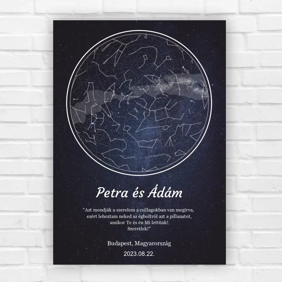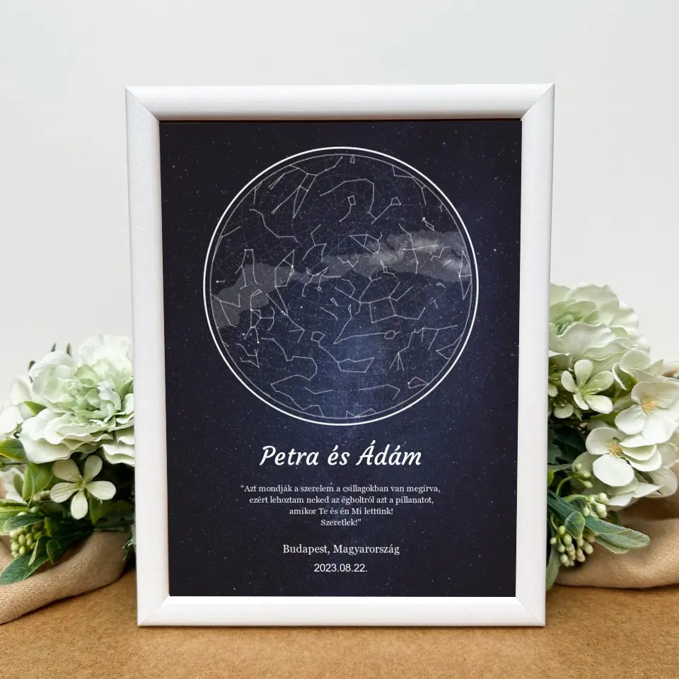 Emlékszel még arra az estére, amikor először csókolt meg a párod? Na és arra, hogy abban a pillanatban milyen varázslatosan csillagos volt feletettek az ég? A mesélő csillagtérkép magában őrzi a legszebb emléketeket és a szerelmetekről mesél. Legyen szó első csókról, vagy amikor először fogtátok meg egymást kezét, a csillagtérkép megmutatja számotokra, hogy azon a napon, azon a helyen és abban az időpontban milyen csillagok ragyogtak fölöttetek az égbolton.
