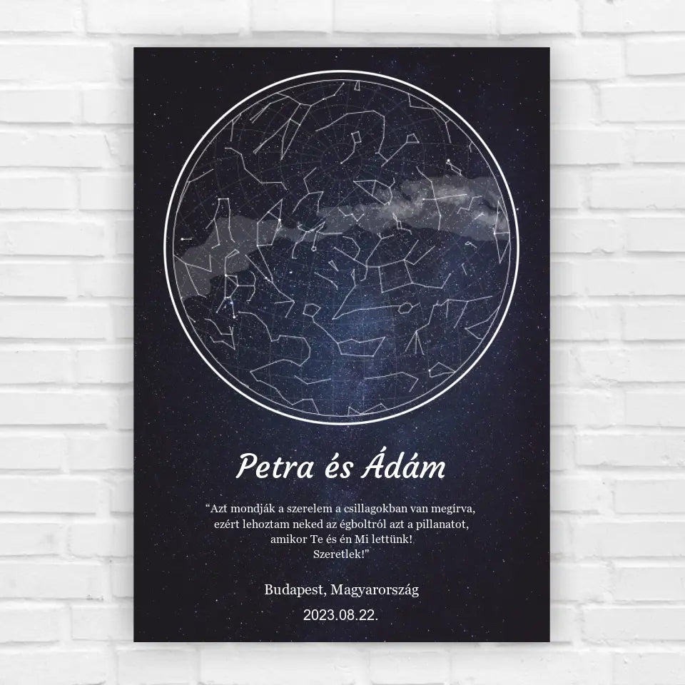 Igazi letisztult szépségek, amelyek nem csak egy egyszerű ajándékként szolgálnak, hanem remek dekorelemként is. Helyezd a szobád falára, vagy tedd a dolgozó asztalodra a csillagos égbolt csillagtérképet és gyönyörködj benne nap, mint nap. Ez a csillagkép egyedül rólatok mesél és arról, hogy mennyire szeretitek egymást.