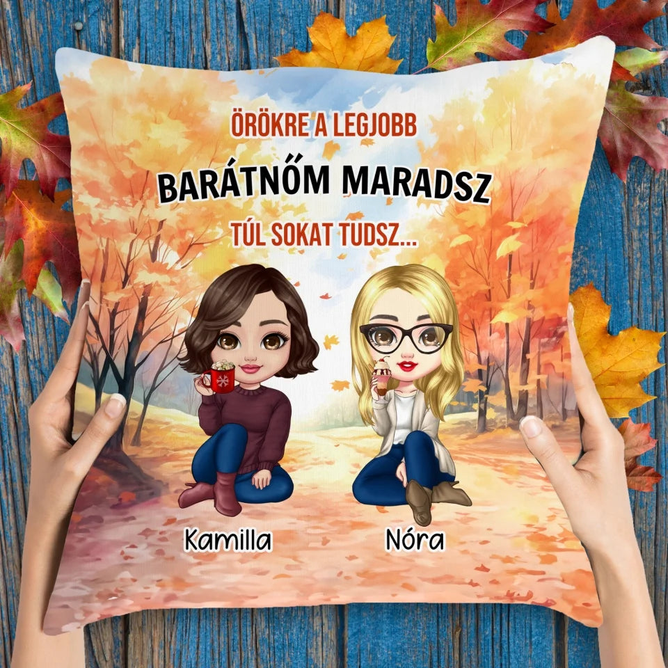 Szeretnéd meglepni a barátnődet? Mit szólnál egy ilyen őszi hangulatú, cuki párnához? A szövege vicces, a külseje bájos és szuper dekorációs elem is. Szerintem biztosan tetszene neki.