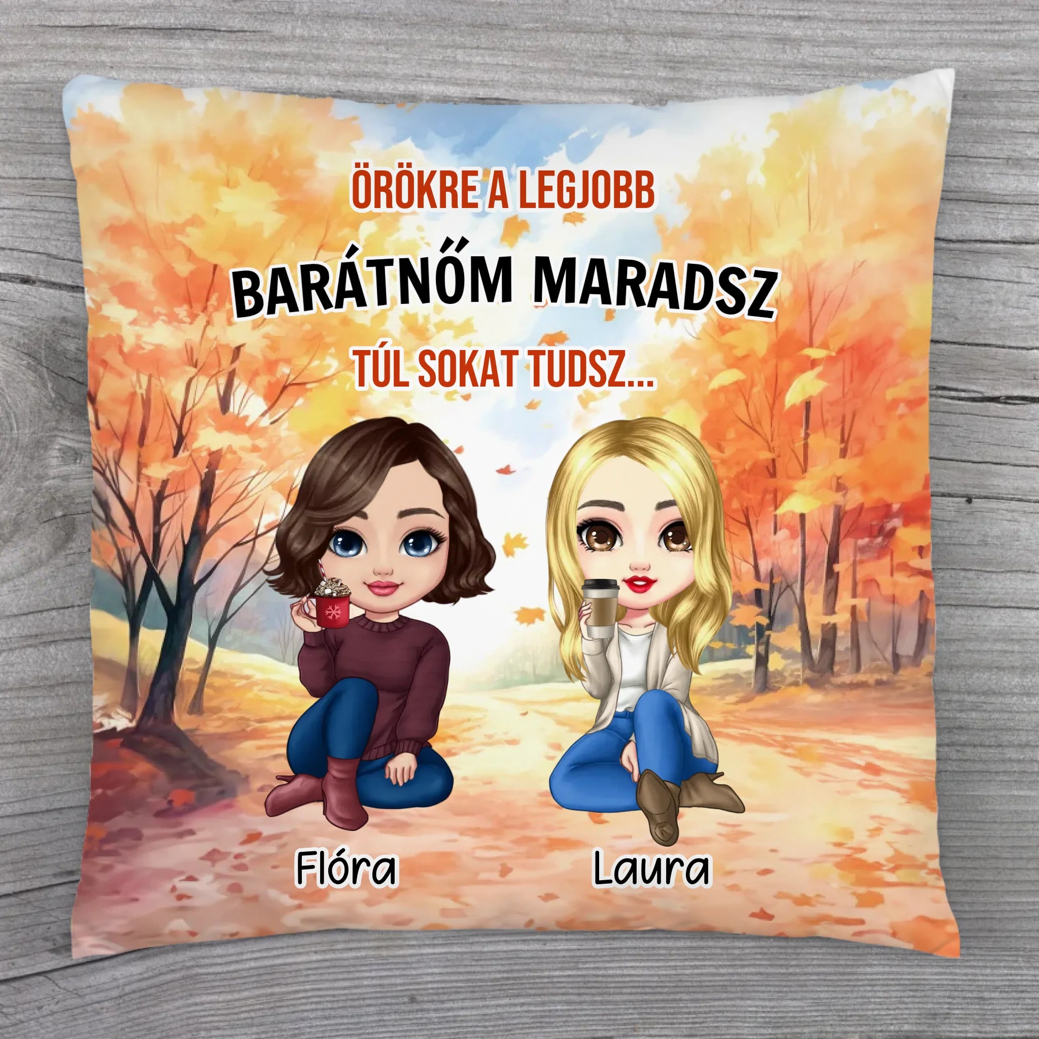 A barátnőknek szóló őszi, csajos párna leírása: