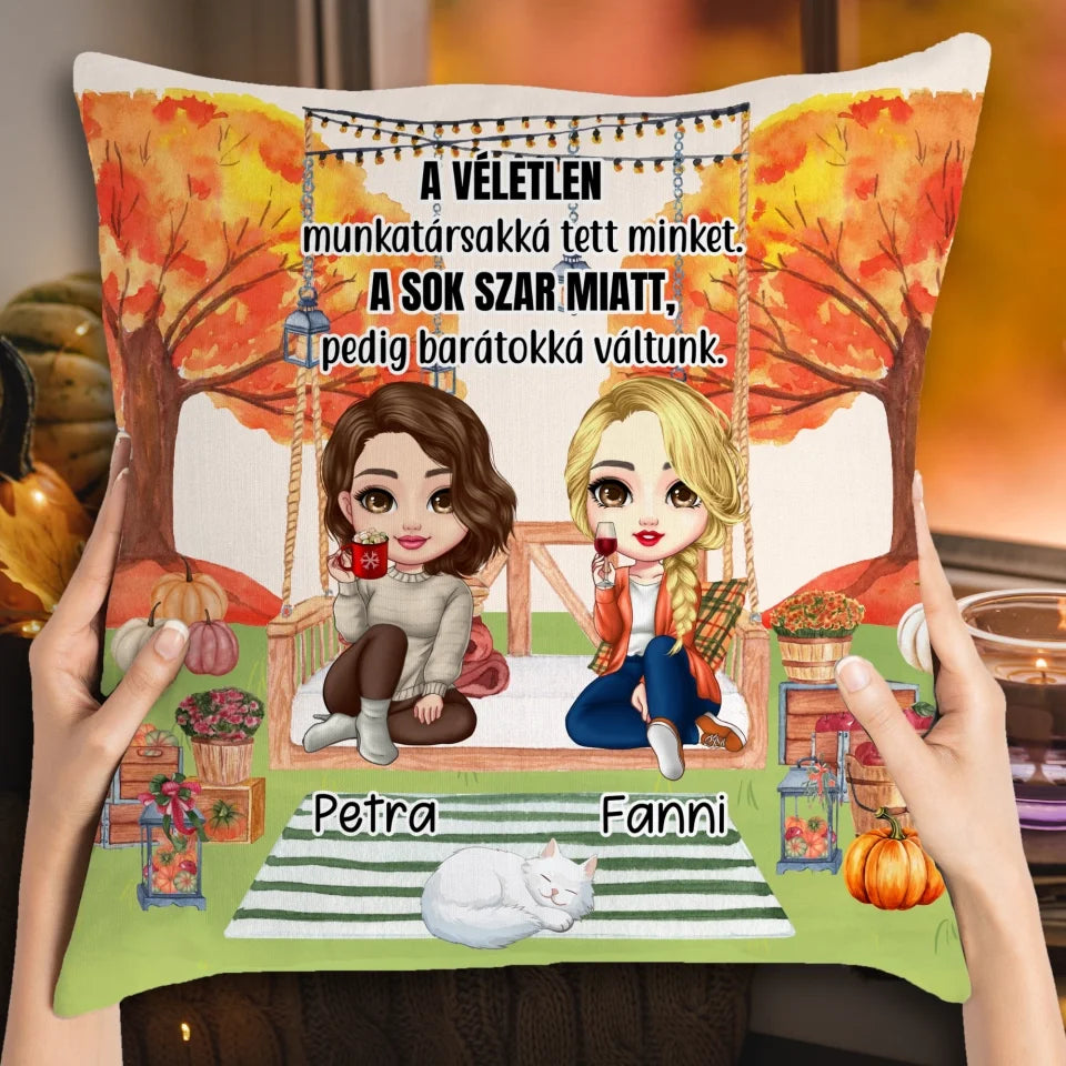 A kollégáknak szóló, vicces őszi párna leírása:
