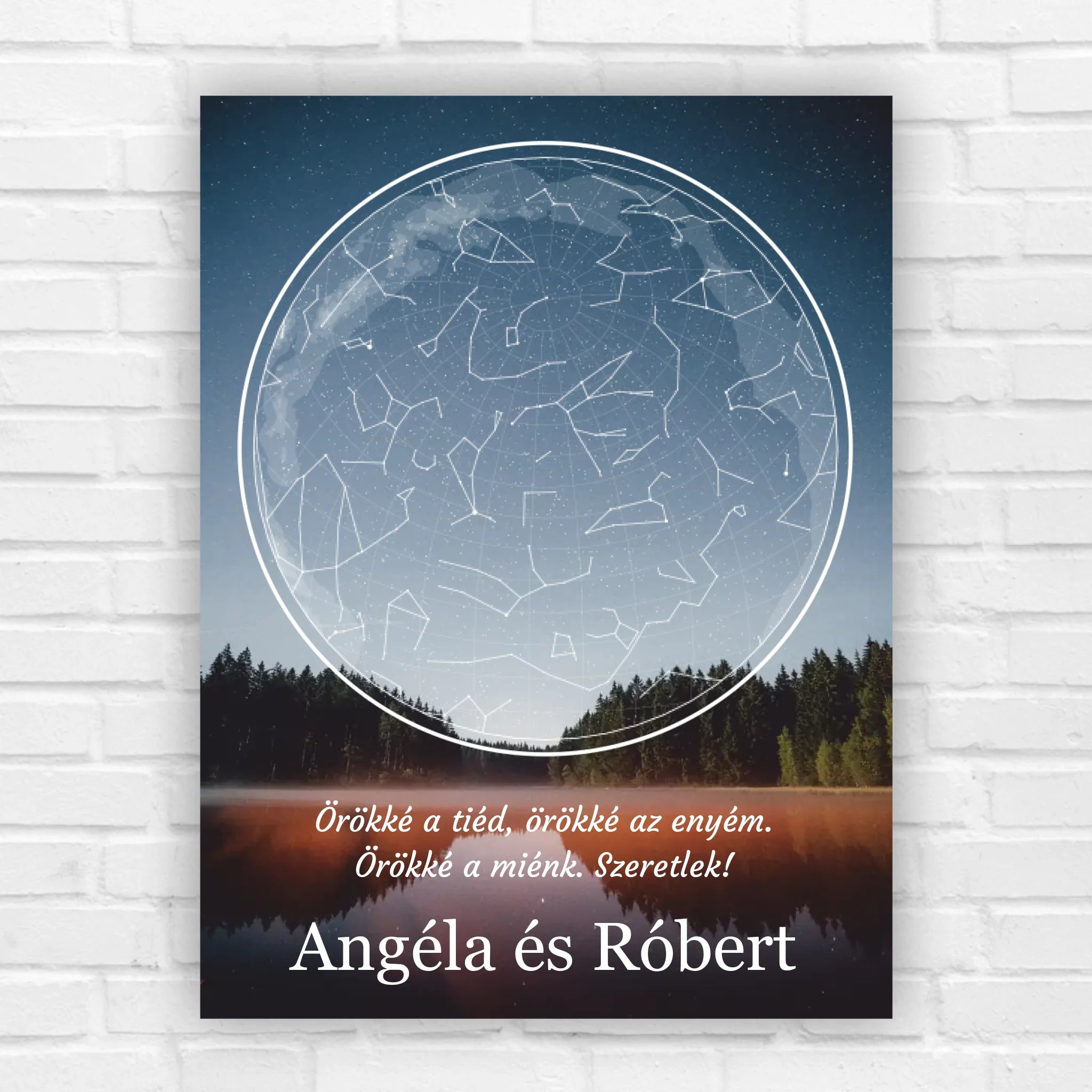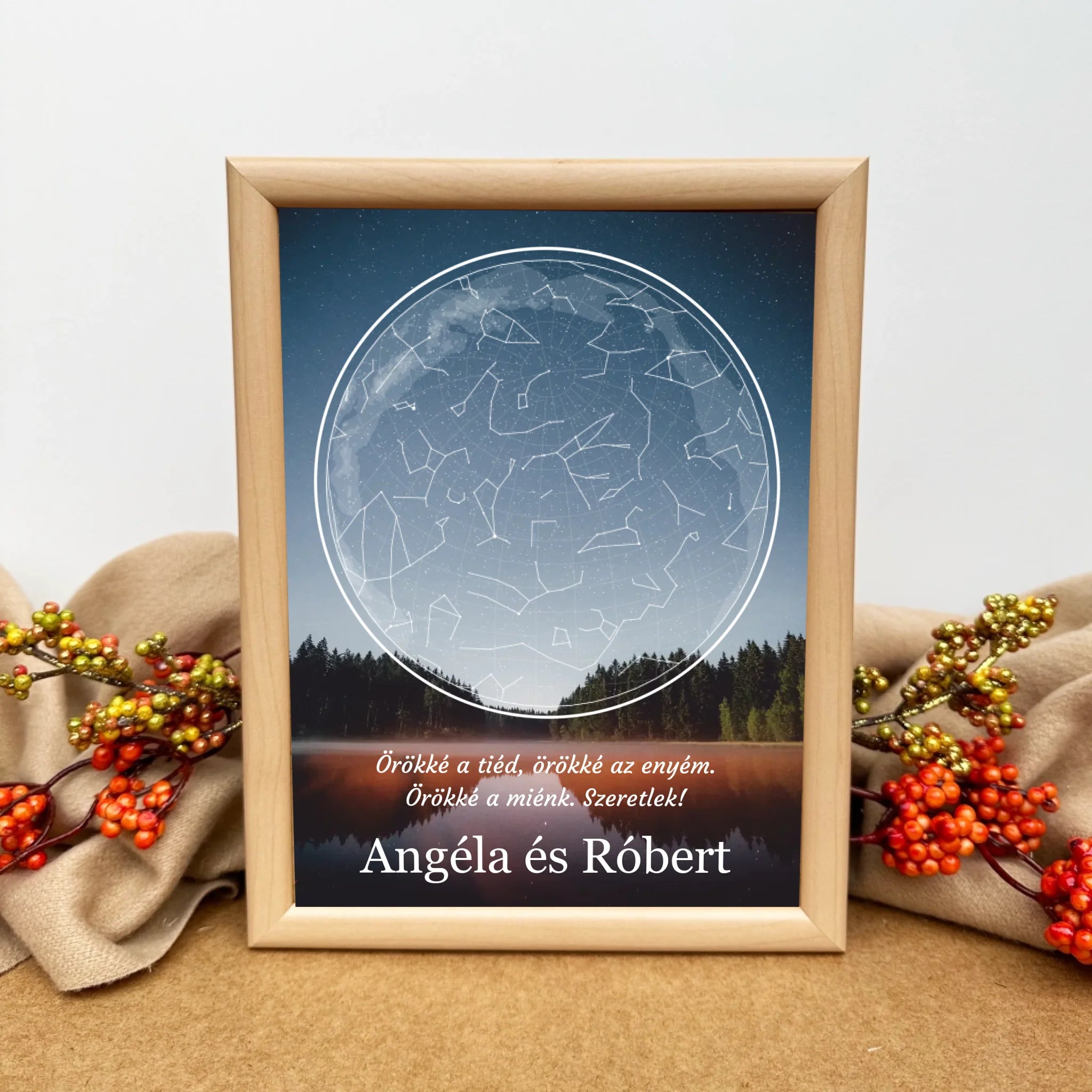 A csillag képek magukban őrzik a legszebb emlékeiteket és a szerelmetekről mesélnek. Legyen szó első csókról, vagy amikor először fogtátok meg egymást kezét, a csillagtérkép megmutatja számotokra, hogy azon a napon, azon a helyen és abban az időpontban milyen csillagok ragyogtak fölöttetek az égbolton. Szerelmes ajándék férfiaknak és nőknek. Tökéletes évfordulós ajándék, vagy Valentin napi ajándék.