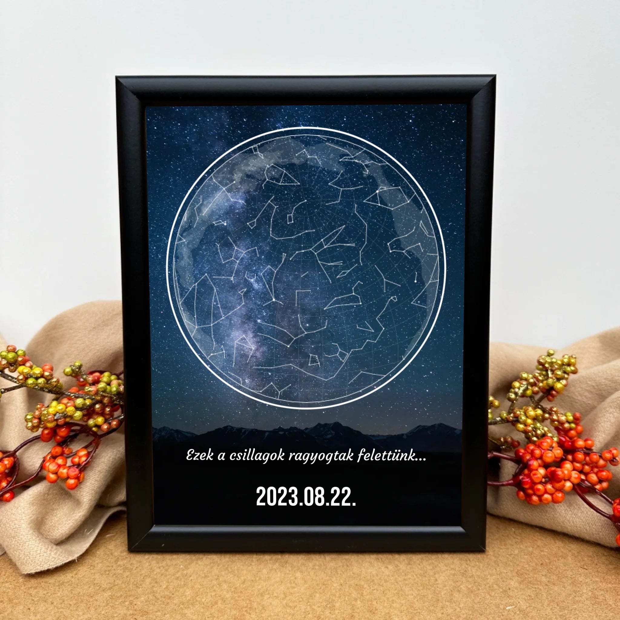 Minden nap, minden órában máshogy csillognak odafent a csillagok. Vajon tudod-e, hogy az nap, amikor te és a szerelmed egy pár letettek, milyen volt feletettek az égbolt? Ha eddig nem tudtad, akkor mi elkészítjük számotokra a lehető legkülönlegesebb ajándékot. A csillagtérképeteket, a saját csillagállásaitokkal. Minden percben, amikor csak ránézel, eszedbe jut majd az a pillanat, ahol és amikor egy pár lettetek.