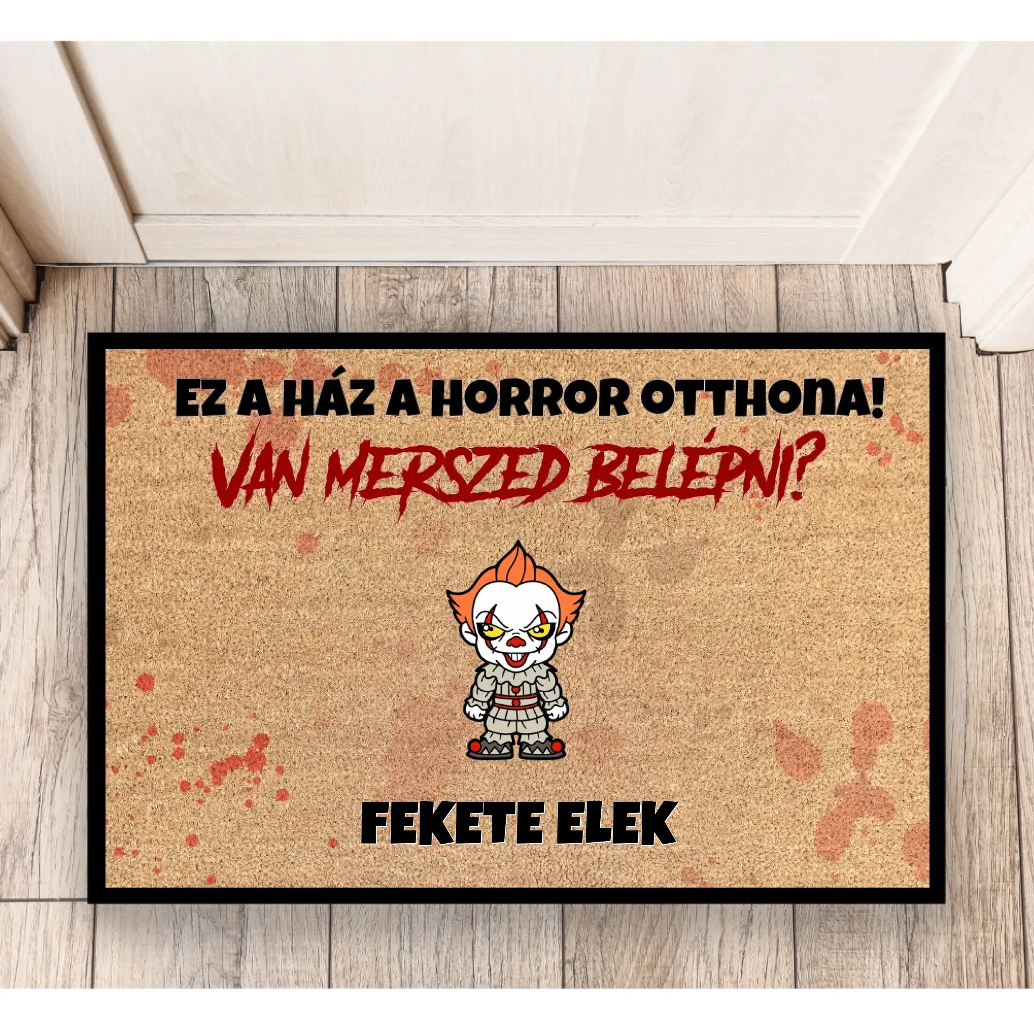 Ez a halloweeni lábtörlő garantáltan mosolyt csal minden érkező arcára. Válaszd ki, milyen ijesztő karakterek képviseljék a családodat és add hozzá a neveket, hogy igazán egyedi legyen a bejáratod dísze.