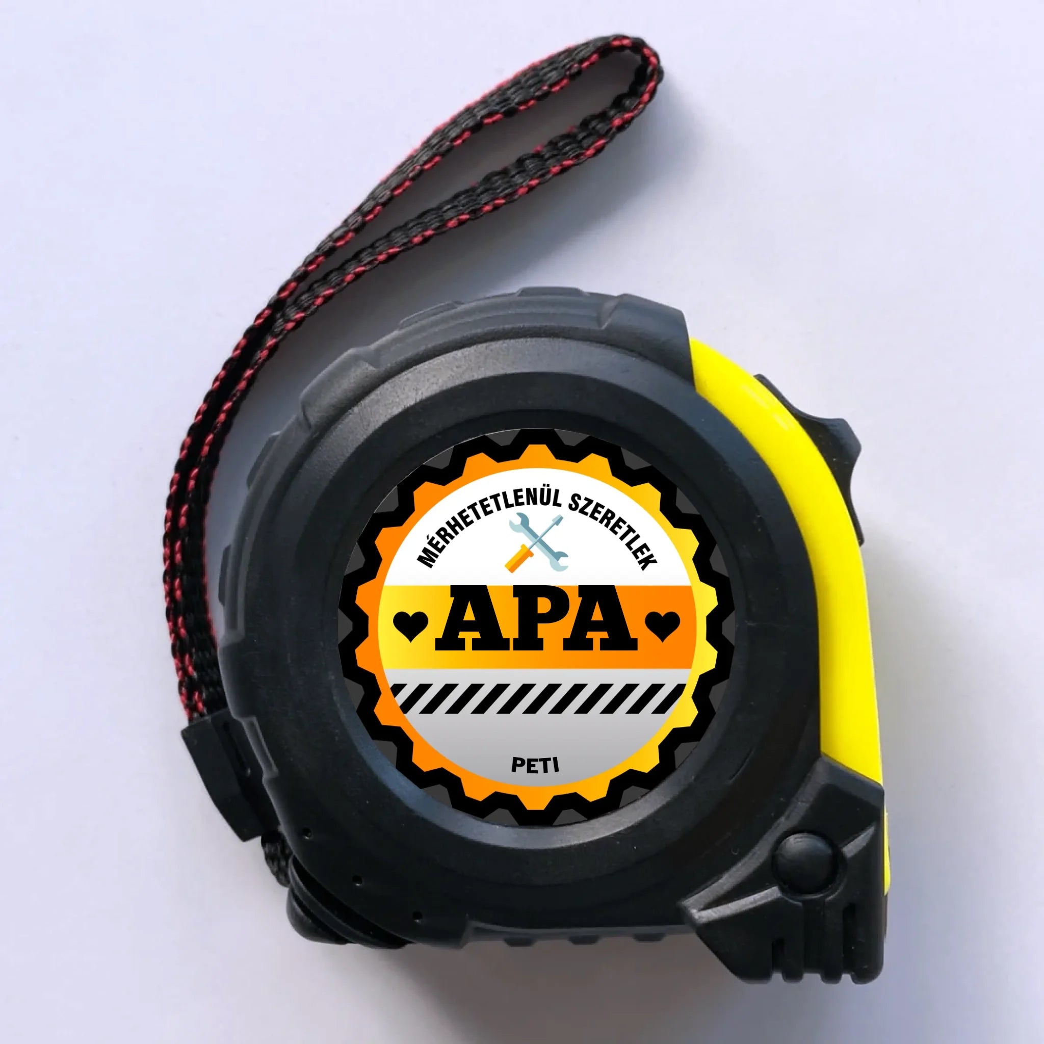 Egy ajándék, ami egyszerre praktikus és lélekig ható. Ez a mérőszalag minden centijében arra emlékezteti Apát, mennyire fontos ő a családnak. A gyerekek nevével még személyesebb, különlegesebb — egy apró tárgy, ami minden nap szeretetet üzen.