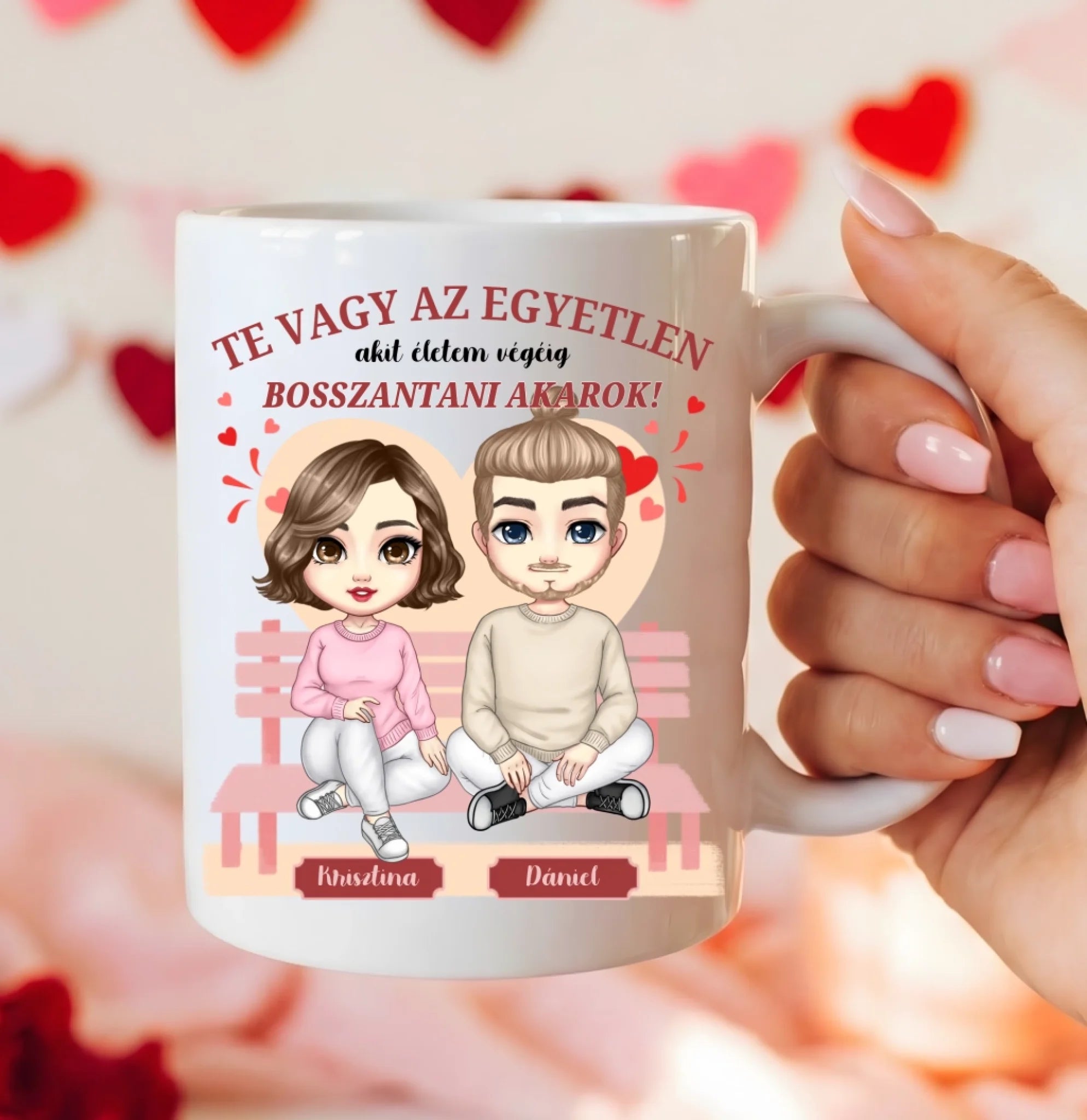 A Chibi bosszantós – egyedi bögre pároknak egy kedvesen provokatív, mégis nagyon szerethető ajándék, amely tökéletesen kifejezi a párkapcsolatok játékos oldalát. Az aranyos Chibi stílusú karakterek ellensúlyozzák a humoros szöveget, így az üzenet nem bántó, hanem inkább összekacsintós és mosolyt csaló. A felirat – „Te vagy az egyetlen, akit életem végéig bosszantani akarok!” – pontosan azt mondja ki, amit sokan éreznek, csak ritkán fogalmaznak meg ilyen őszintén.