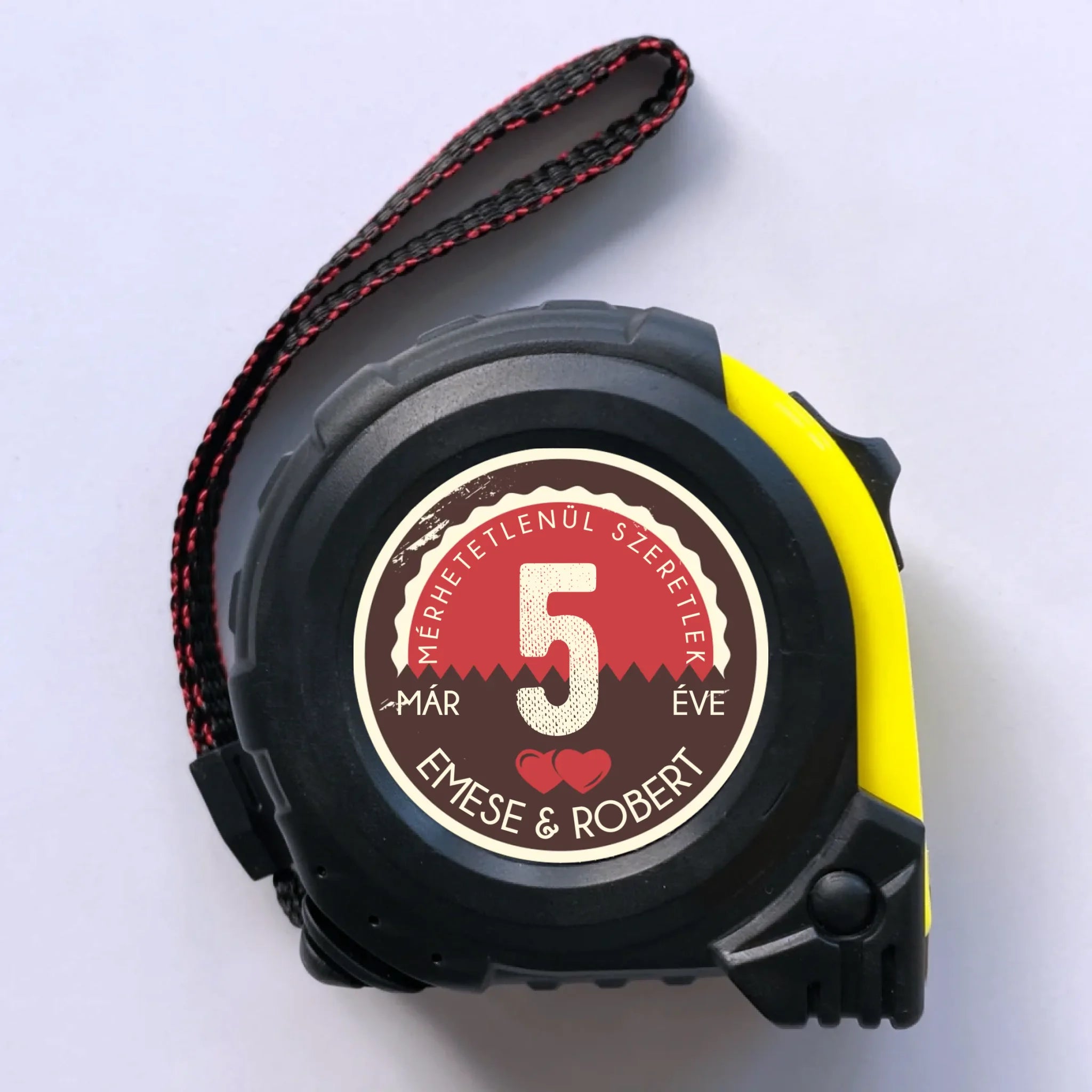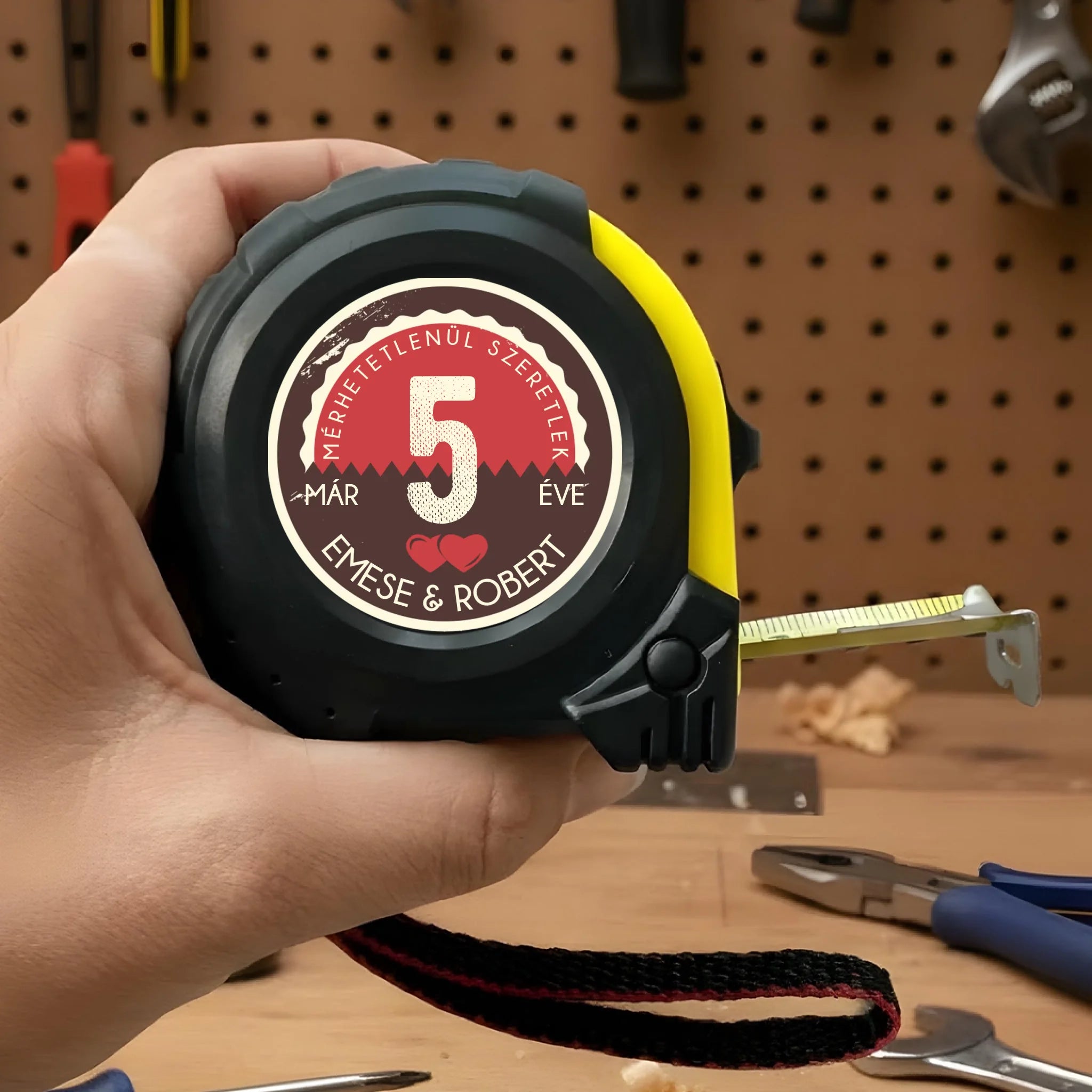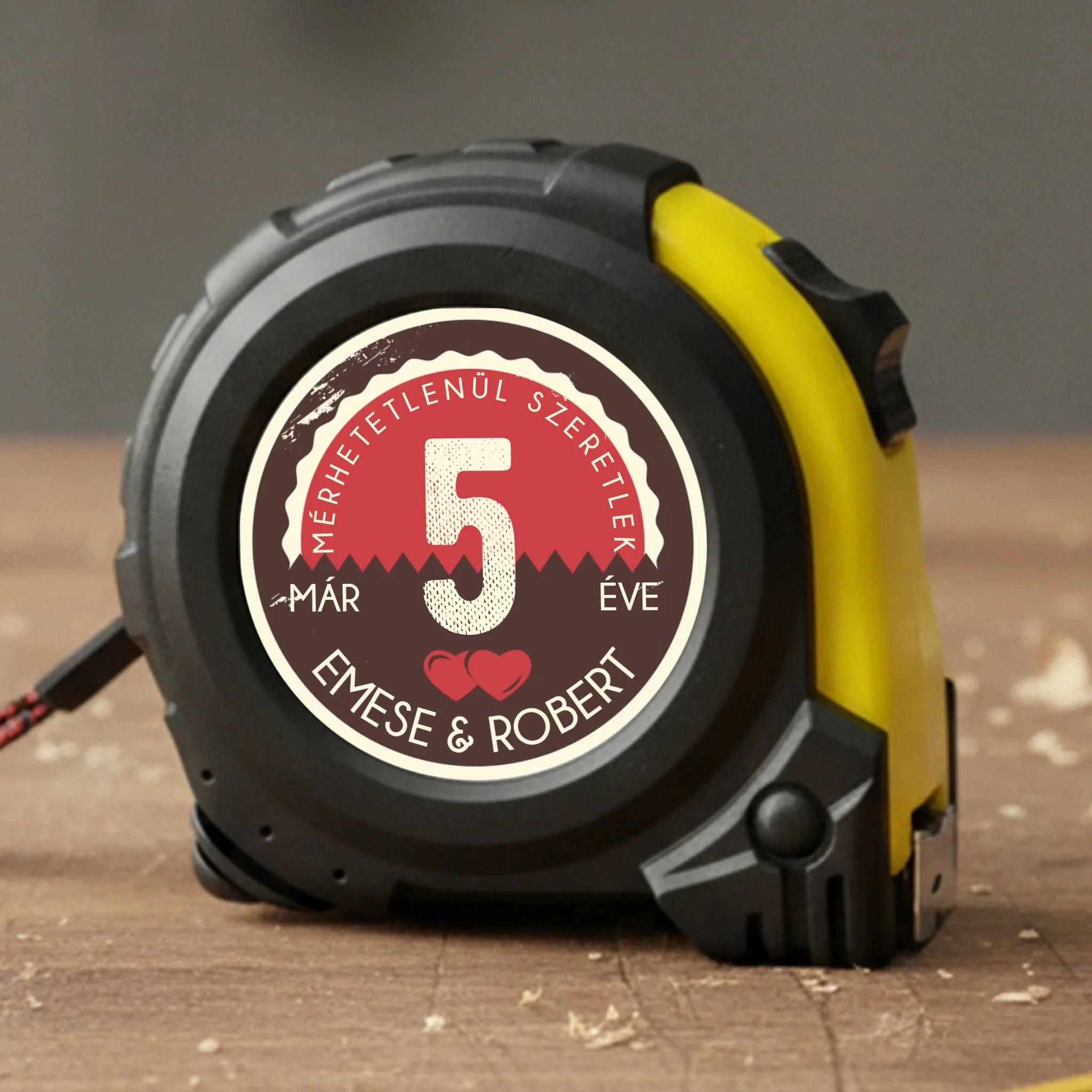 Ez a névre szóló mérőszalag romantikus üzenetével különleges módon ünnepli a szerelmet és az együtt töltött éveket. Kiválasztható az évszám, hogy mióta van együtt a pár, vagy hány éve tart a kapcsolat, így az ajándék igazán személyes emlékké válik.