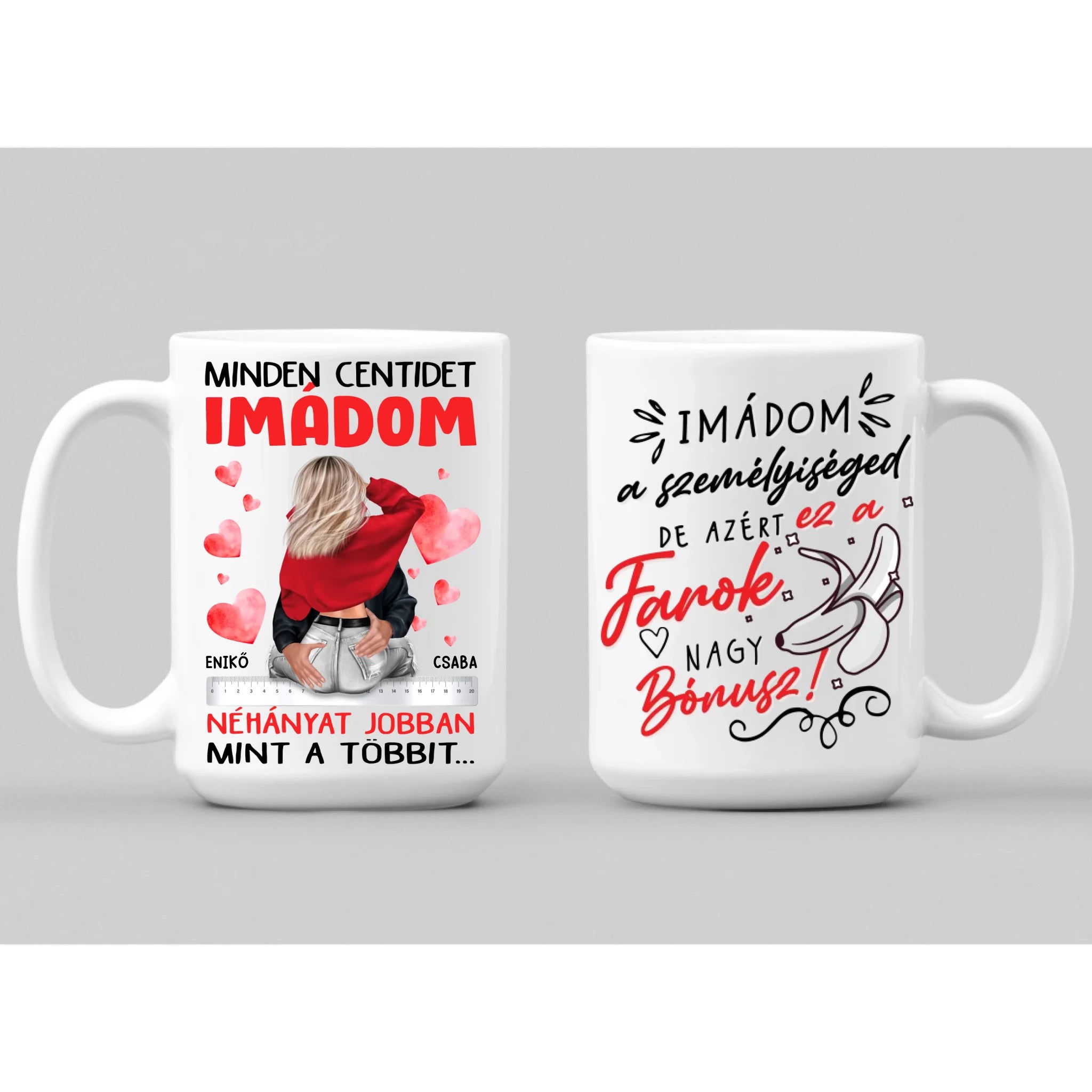 A „Minden centidet imádom” humoros bögre pároknak egy könnyed, szeretetteljes poénba csomagolt ajándék, amely mosolyt csal a mindennapokba. A felirat játékosan utal a kapcsolatok egyik gyakori témájára, miközben megőrzi a kedves, összekacsintós hangulatot. A dizájn személyre szabható, és hat különböző üzenet közül választható, így minden pár megtalálhatja a hozzá leginkább illő verziót.