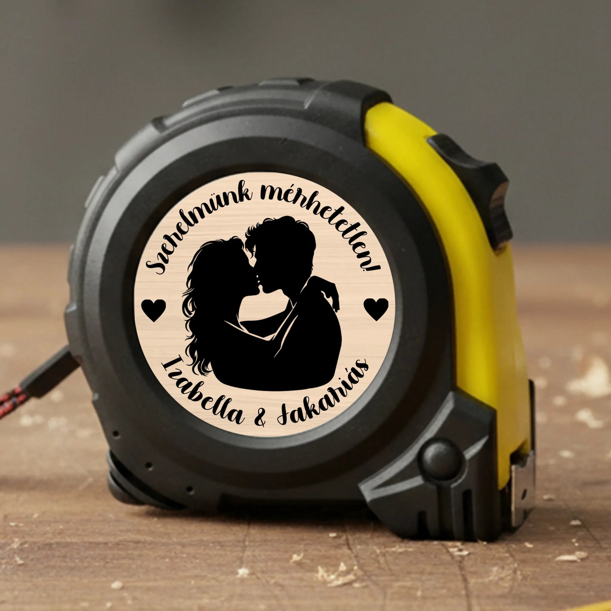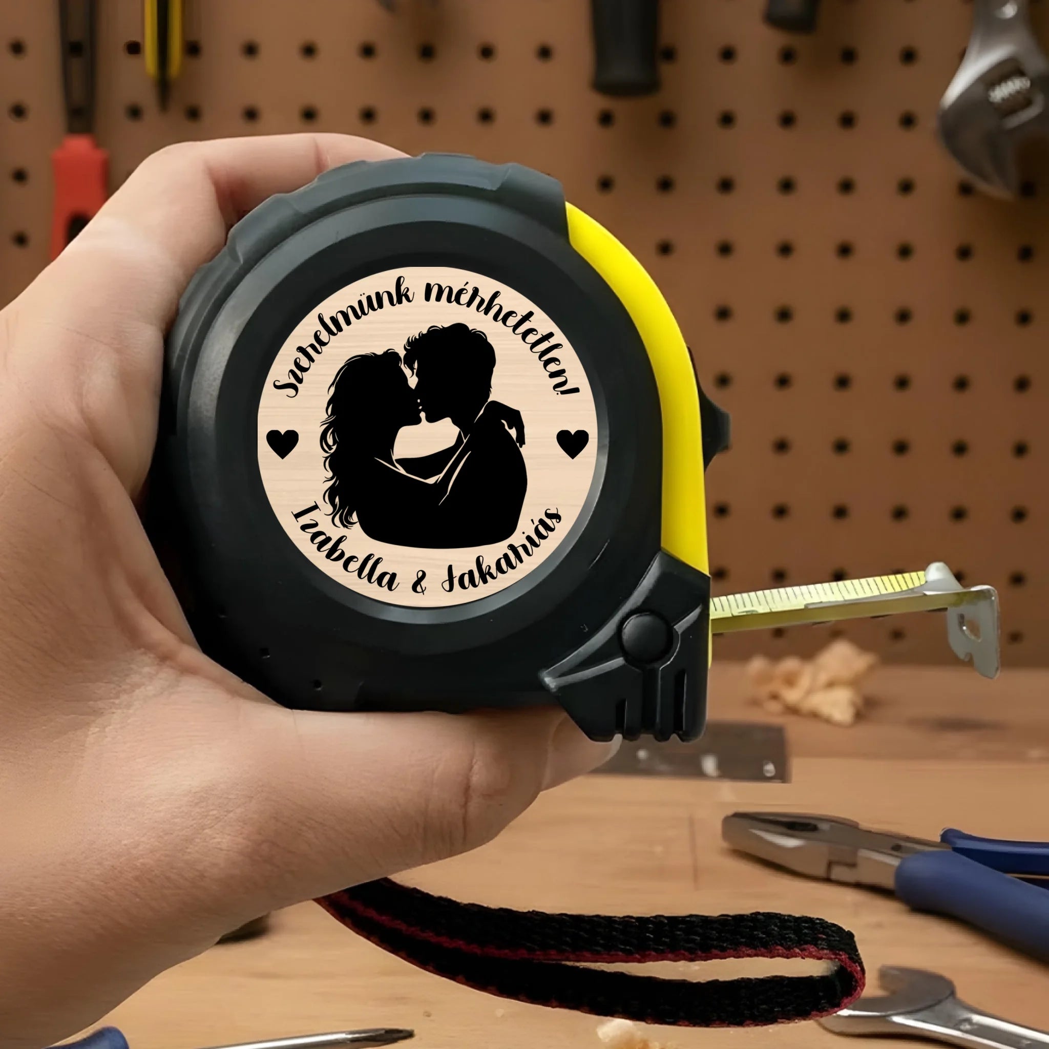Ez a névre szóló, egyedi mérőszalag romantikus üzenetével különleges módon fejezi ki, hogy a szerelem valóban határtalan. A termék négy különböző dizájnnal választható, így minden pár megtalálhatja a hozzá legjobban illő stílust.