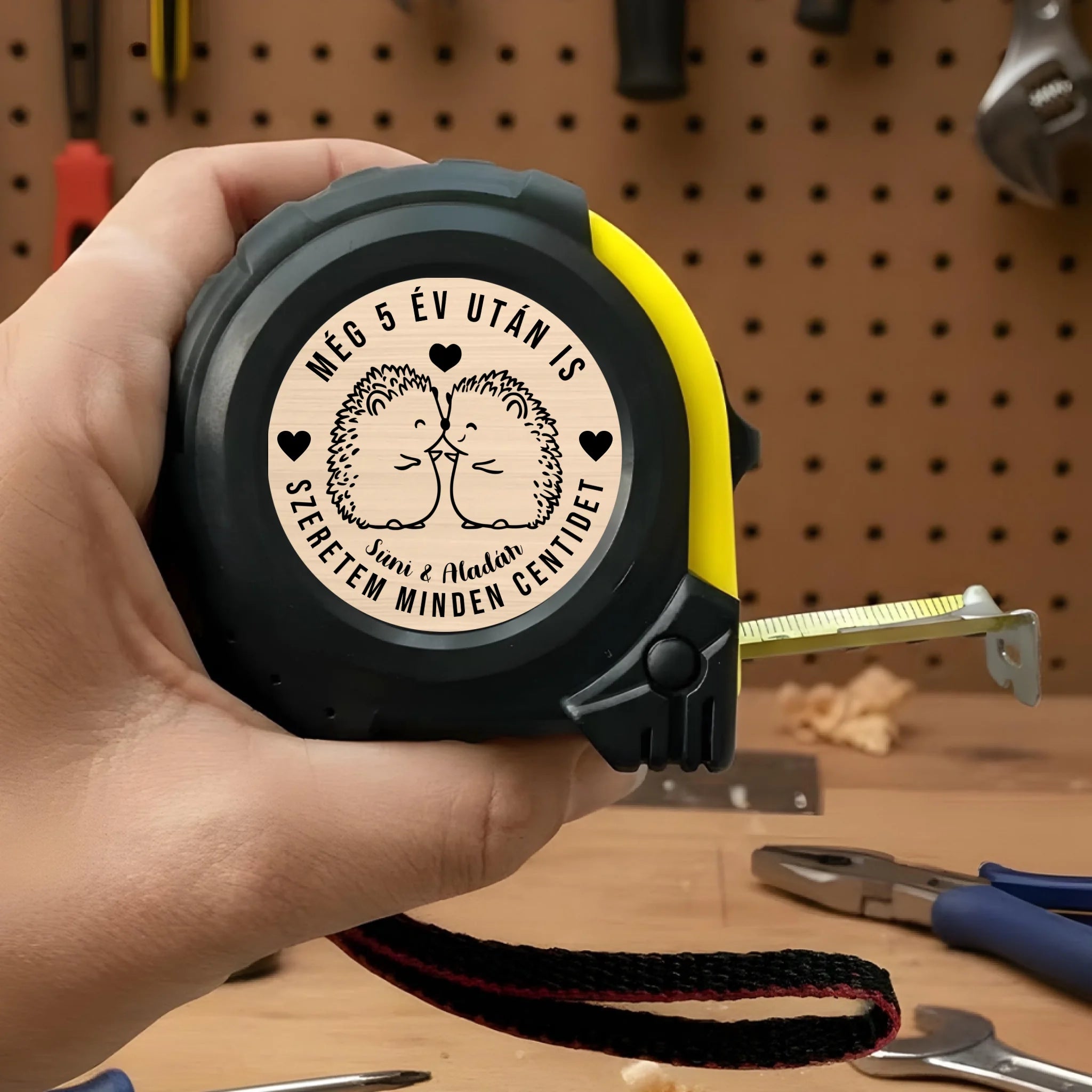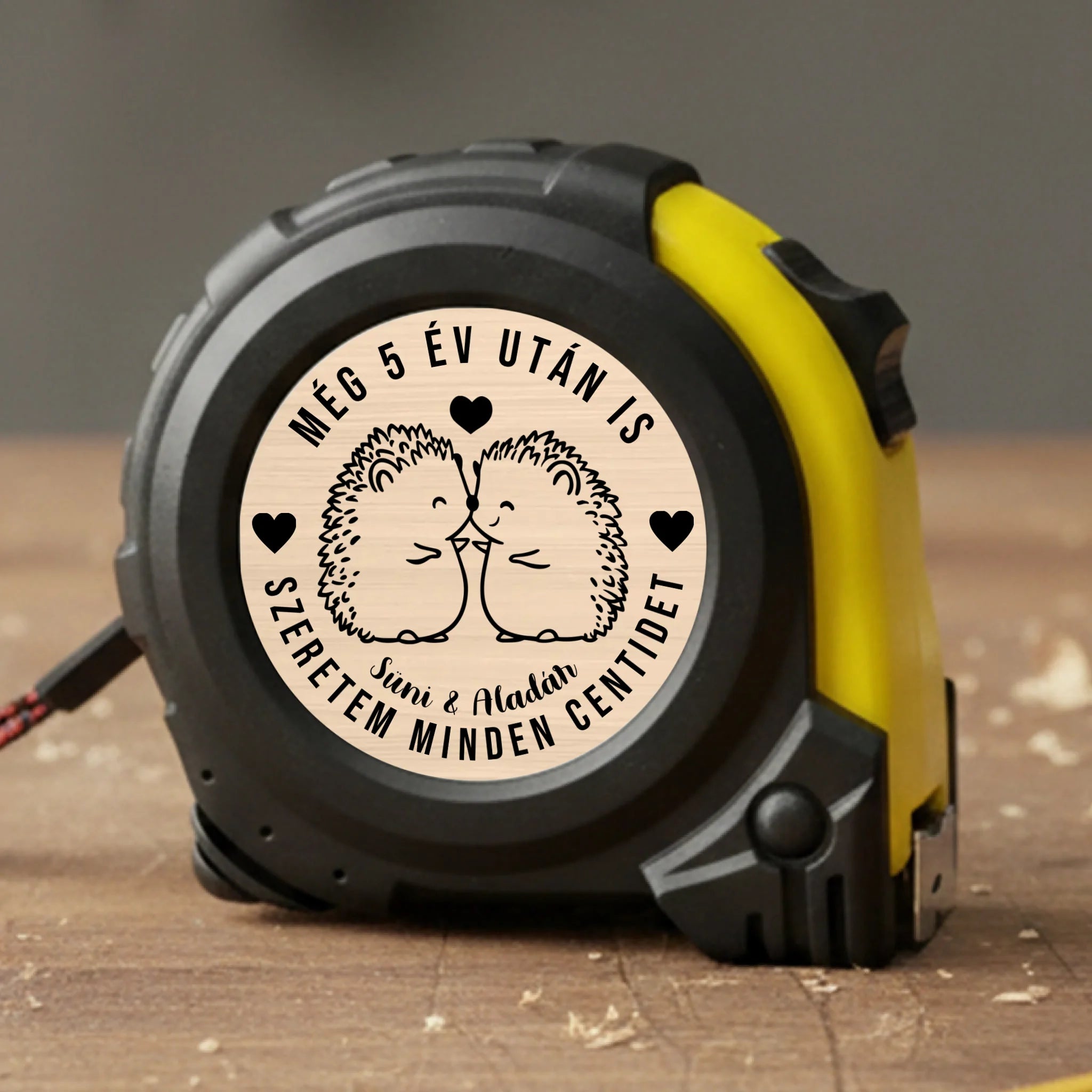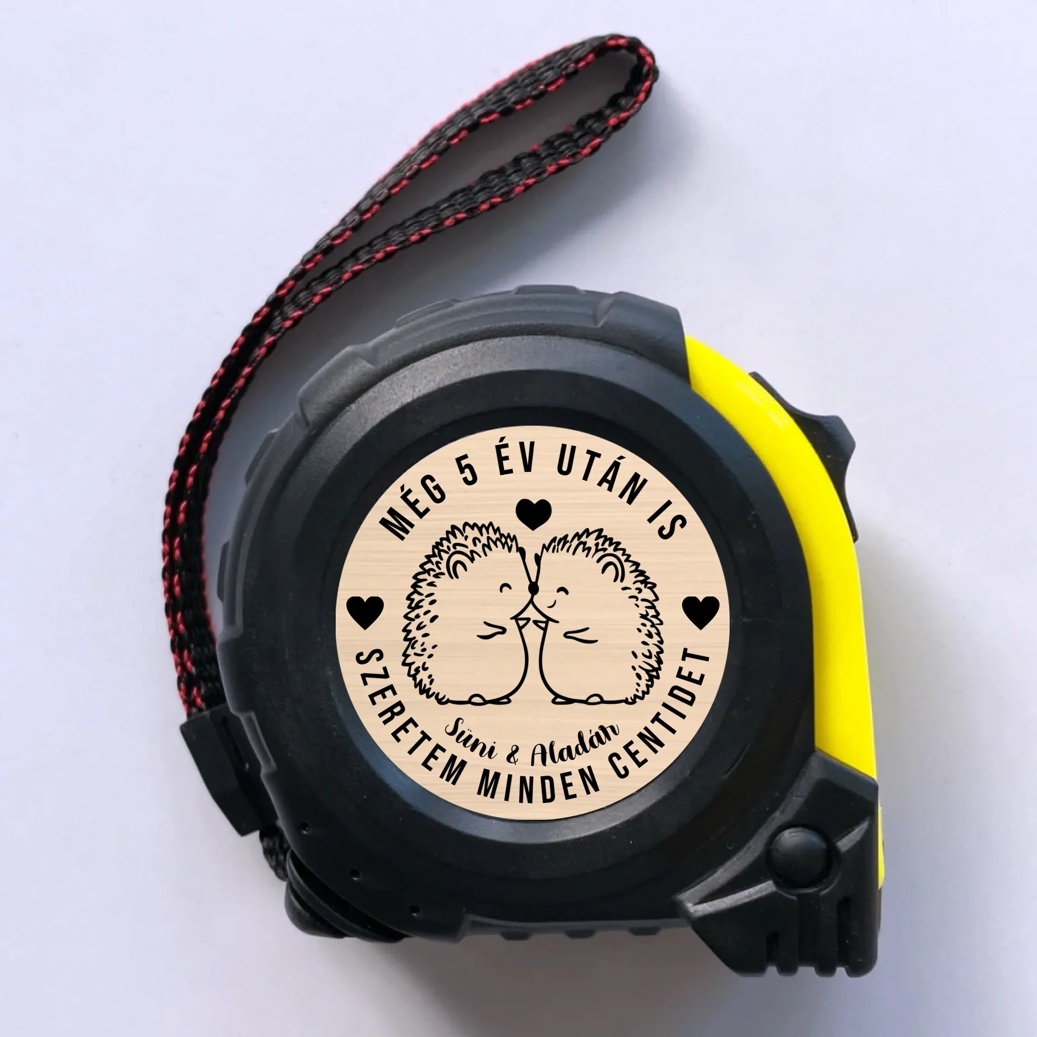 Ez az egyedi, névre szóló mérőszalag igazán különleges és kedves ajándék szerelmeseknek. A termék 12 különböző cuki kisállatos mintával választható, amelyek még bájosabbá és személyesebbé teszik a romantikus üzenetet.