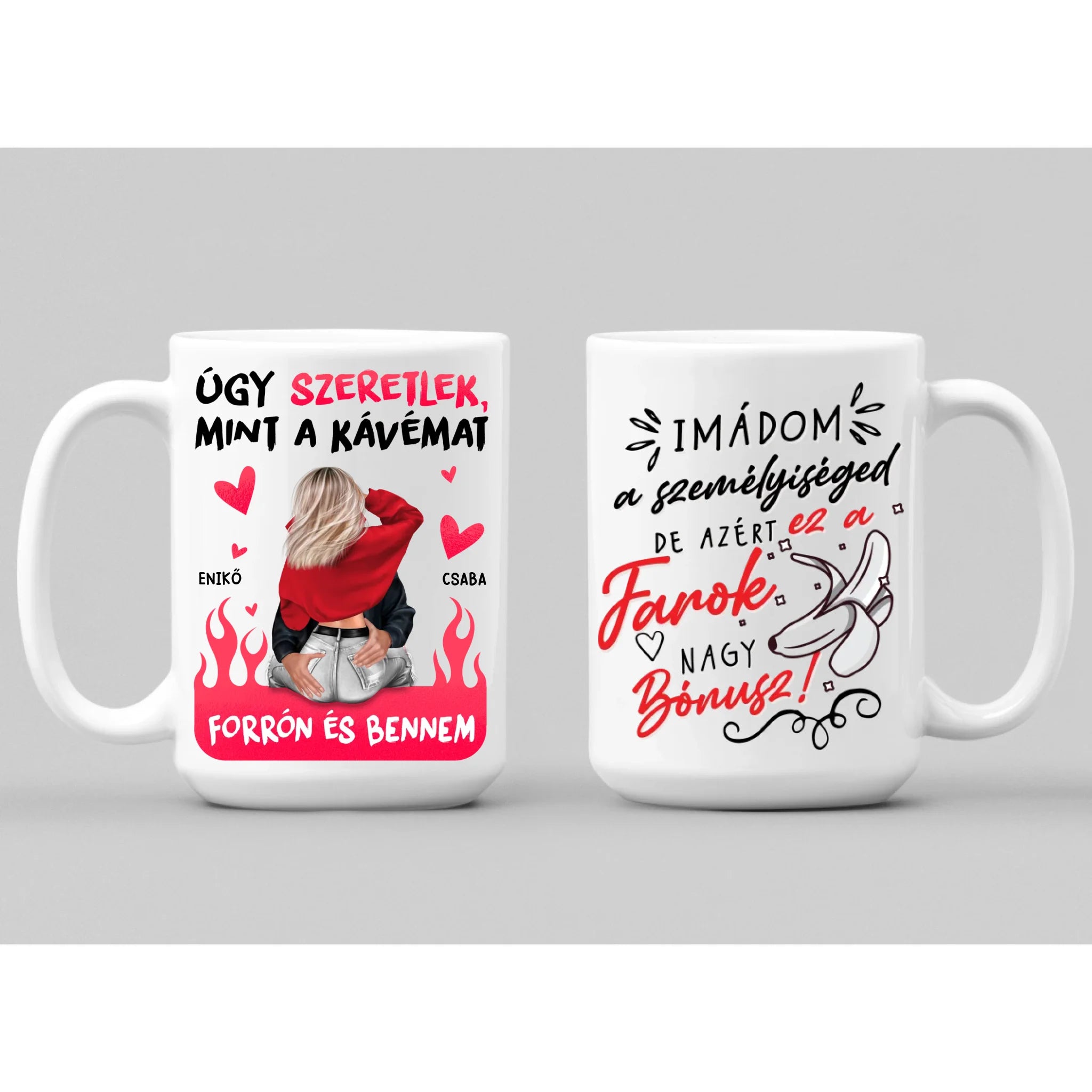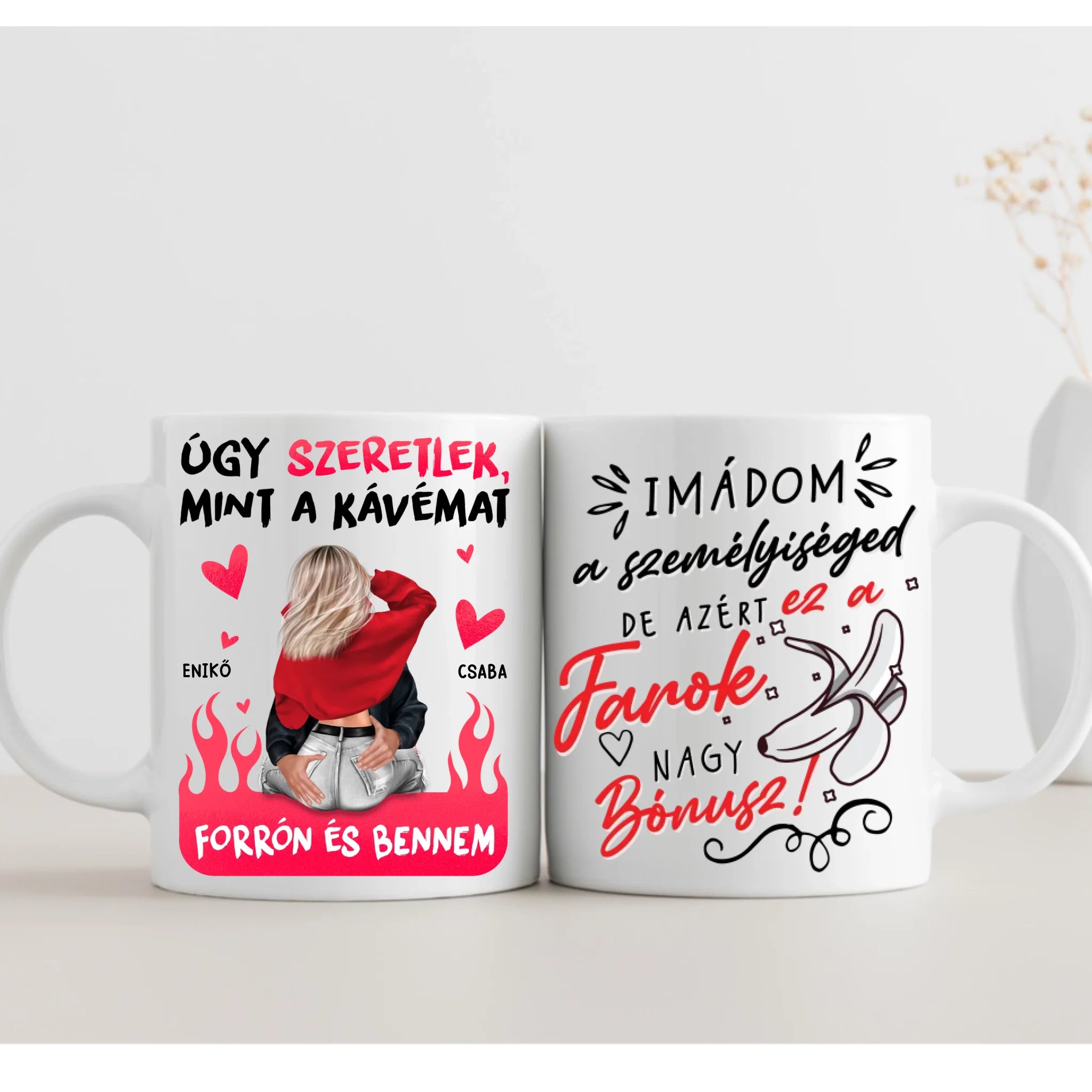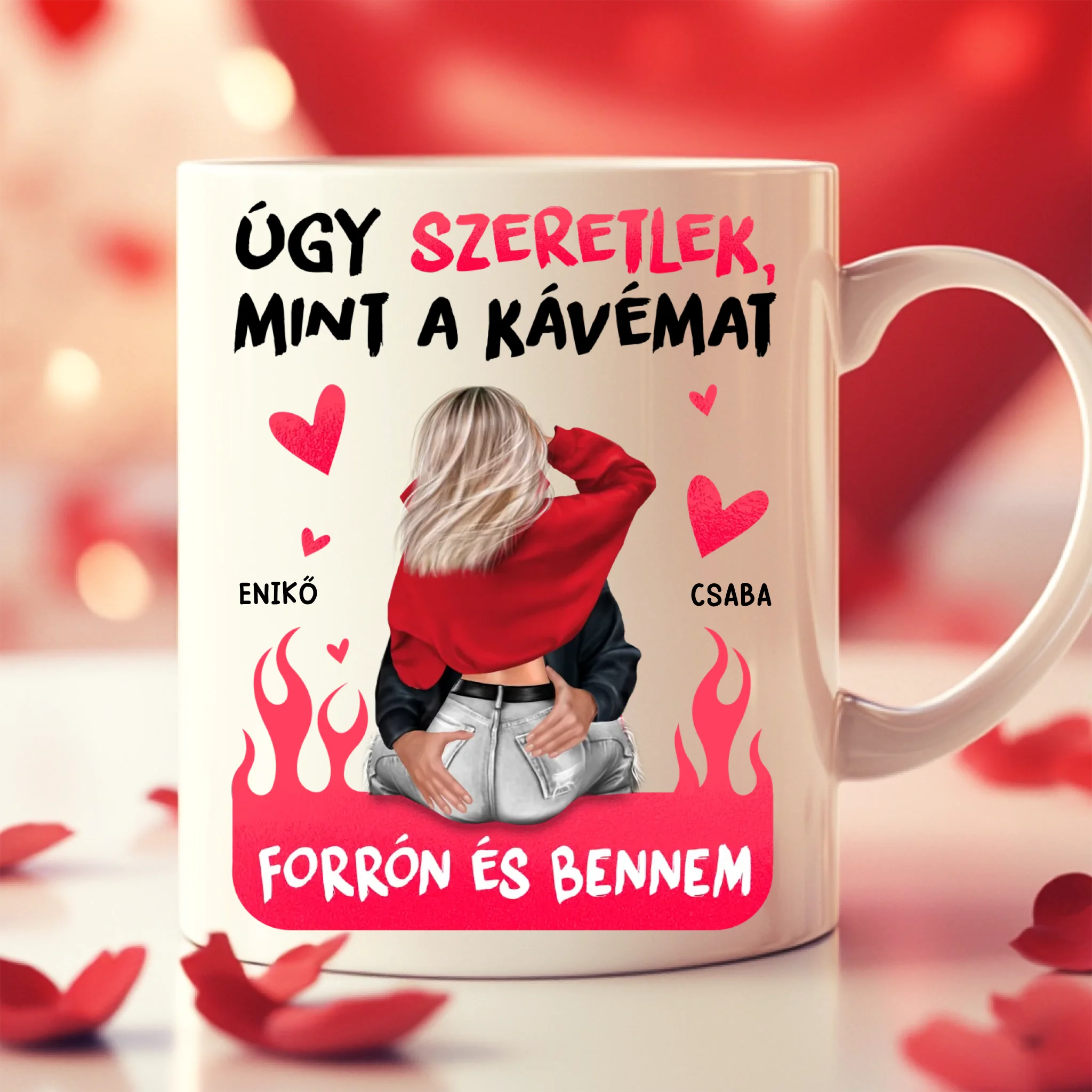 Az „Úgy szeretlek, mint a kávémat” bögre pároknak egy merészen humoros, mégis szerelmes ajándék, amely egy csipetnyi pikáns poénnal fűszerezi meg a mindennapokat. A játékos, felnőtteknek szóló üzenet, inkább összekacsintós, mint provokatív, így garantáltan mosolyt csal az arcokra.
