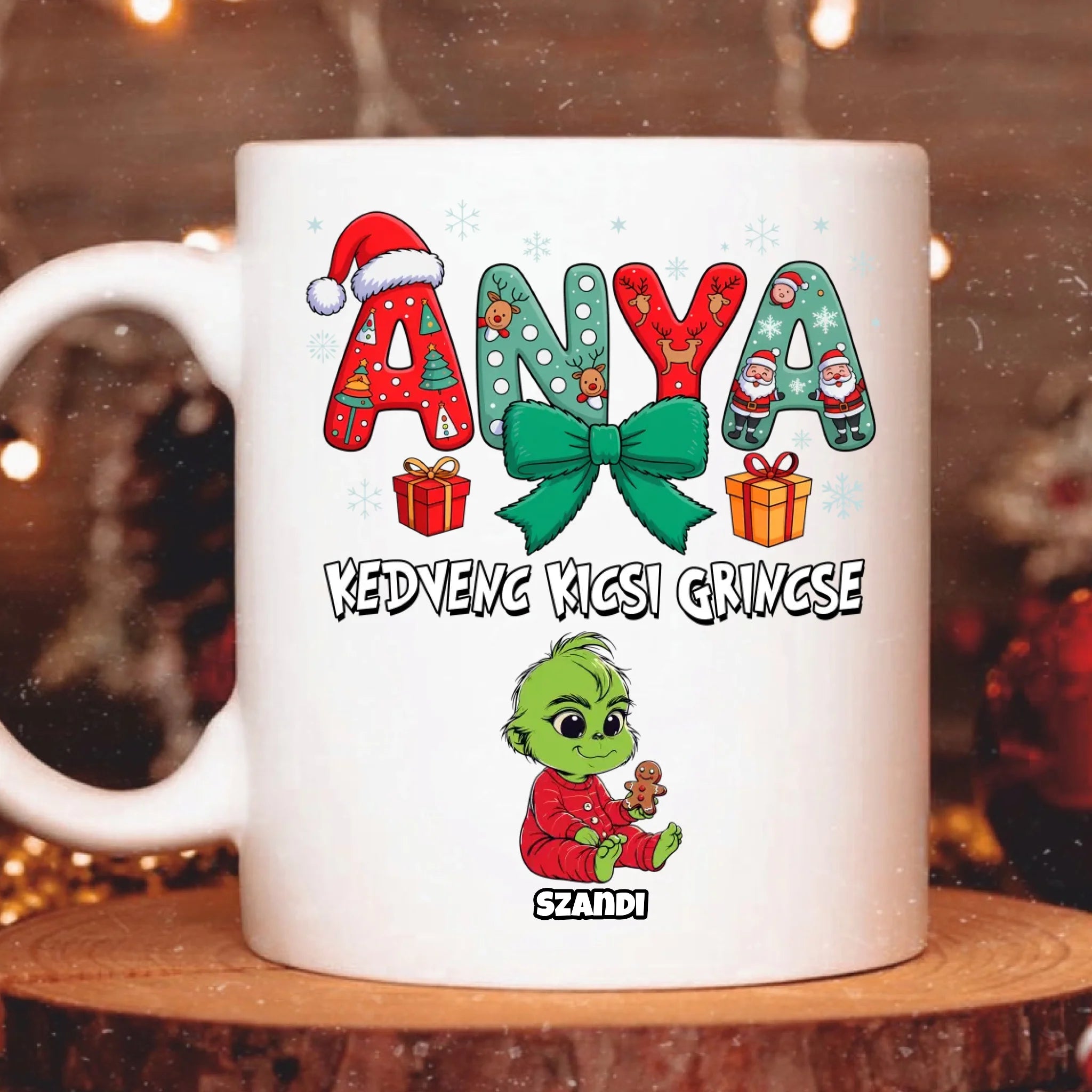 „Anya kedvenc kicsi grincsei” – alatta pedig ott sorakoznak a család legcukibb „kis Grincsei”. Minden egyes figuramegszemélyesíthető, hogy tényleg a Te gyerekeid mosolya köszönjön vissza róla.