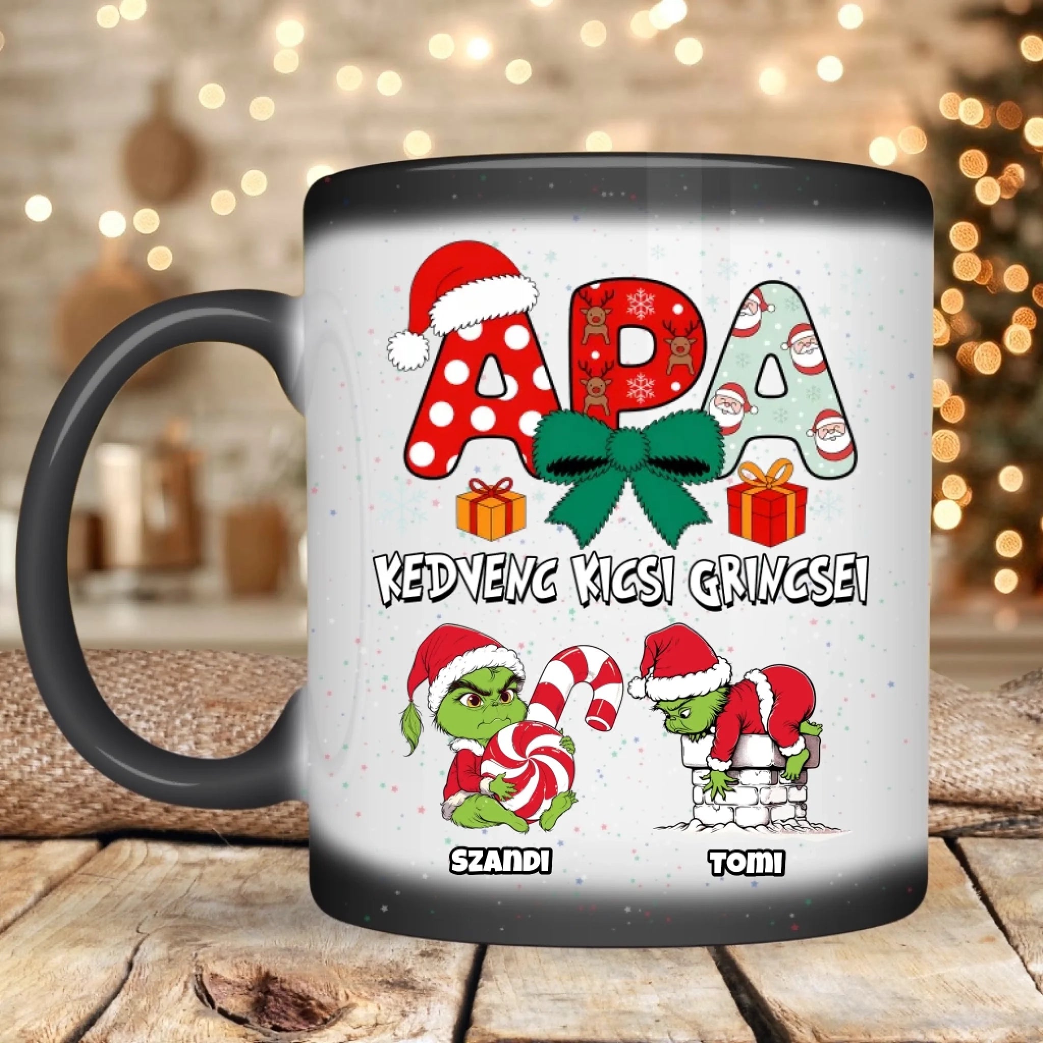 „Anya kedvenc kicsi grincsei” – alatta pedig ott sorakoznak a család legcukibb „kis Grincsei”. Minden egyes figuramegszemélyesíthető, hogy tényleg a Te gyerekeid mosolya köszönjön vissza róla.