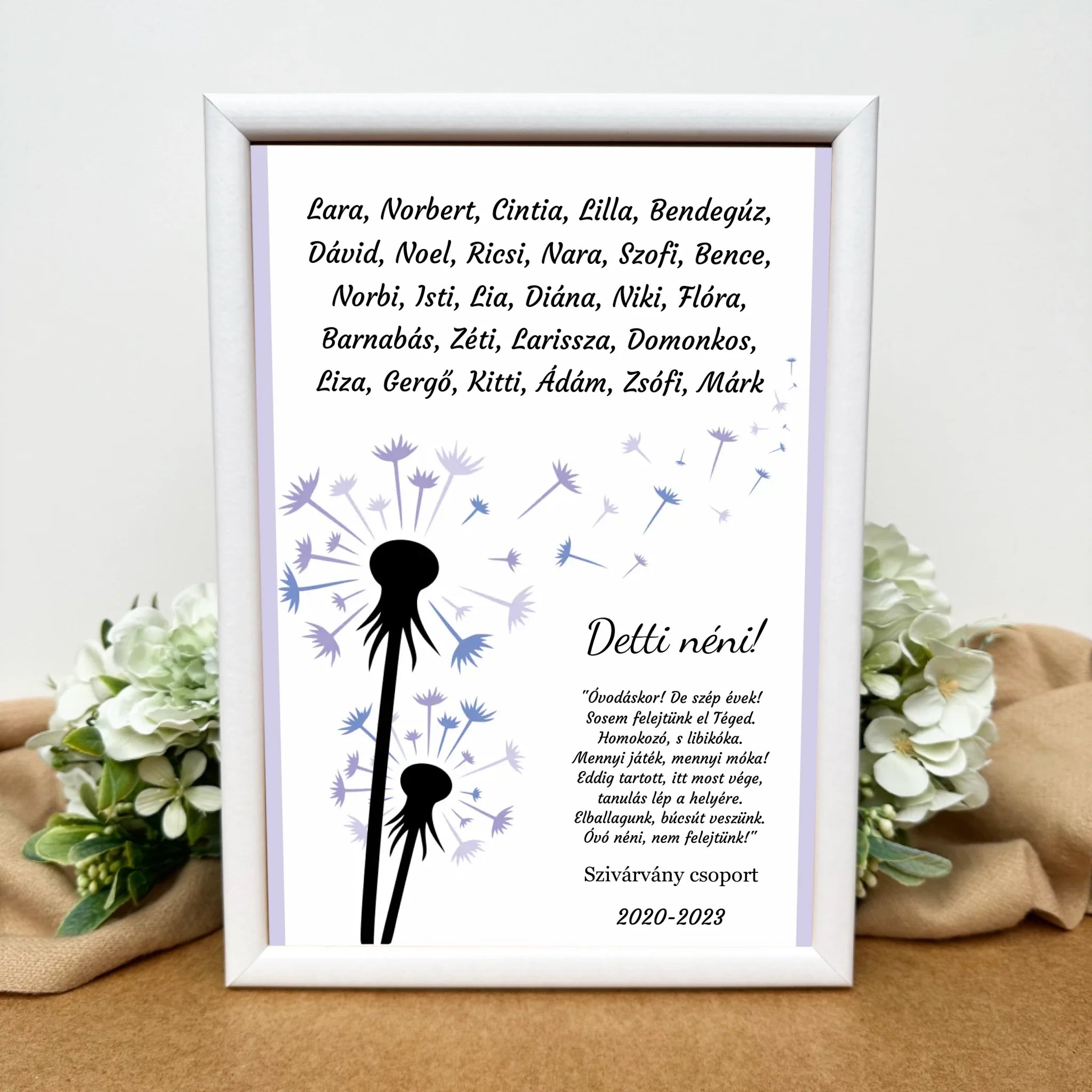 Szívet melengető, keretezett kép, amely remek ajándék óvónőknek ballagásra. Lepd meg őt az ovis csoport nevében. Biztosan könnybe lábad majd a szeme.